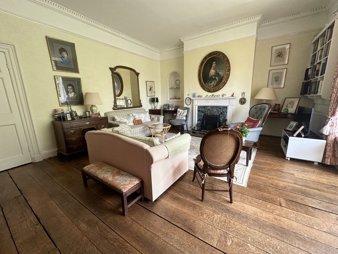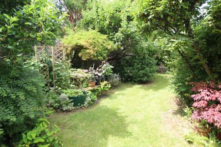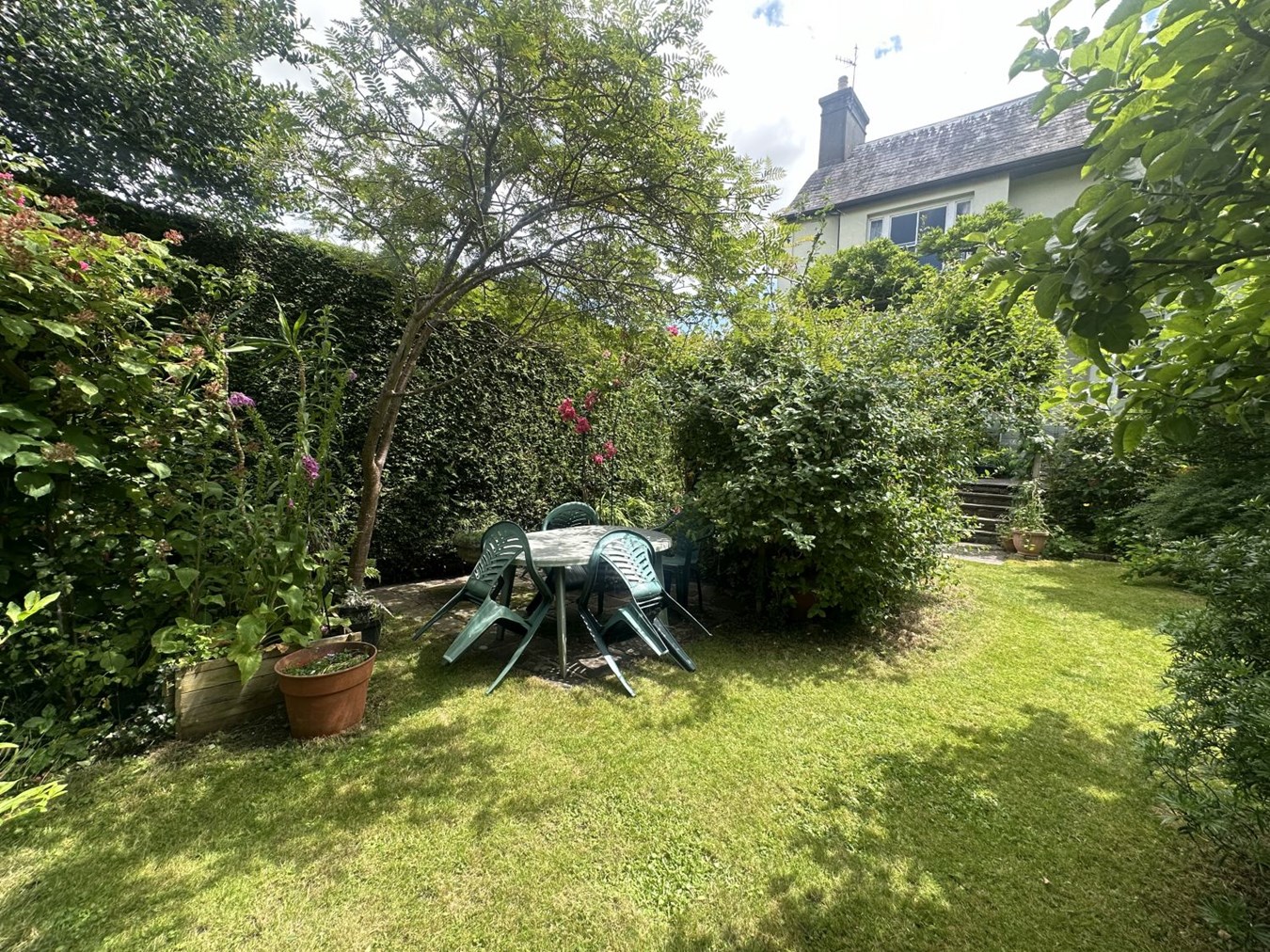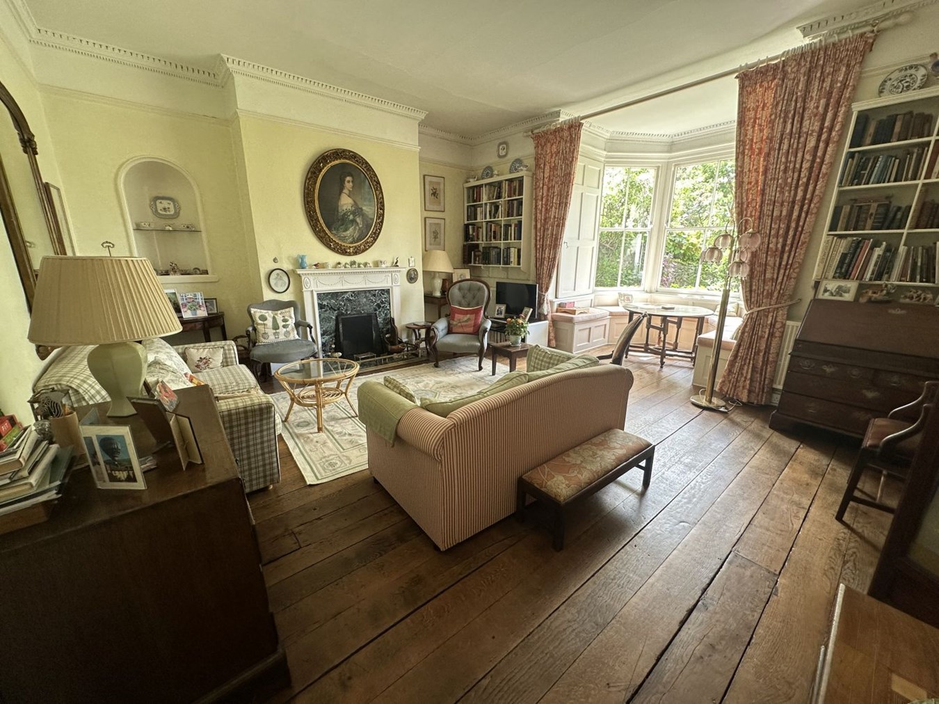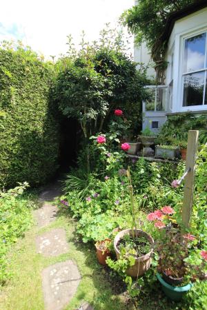 Outside, the front of the property boasts a cast iron-railed courtyard and to the side, there is a parking space for one or two cars and garage—a rare find for a town property. The rear garden is a tranquil haven, featuring a paved terrace off the kitchen with steps leading down to a lawned area. This garden is adorned with established shrub and flower borders and private seating areas. A lovely, twisting wisteria climbs the rear of the house between the bay windows. There is also access to the rear of the garage.