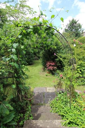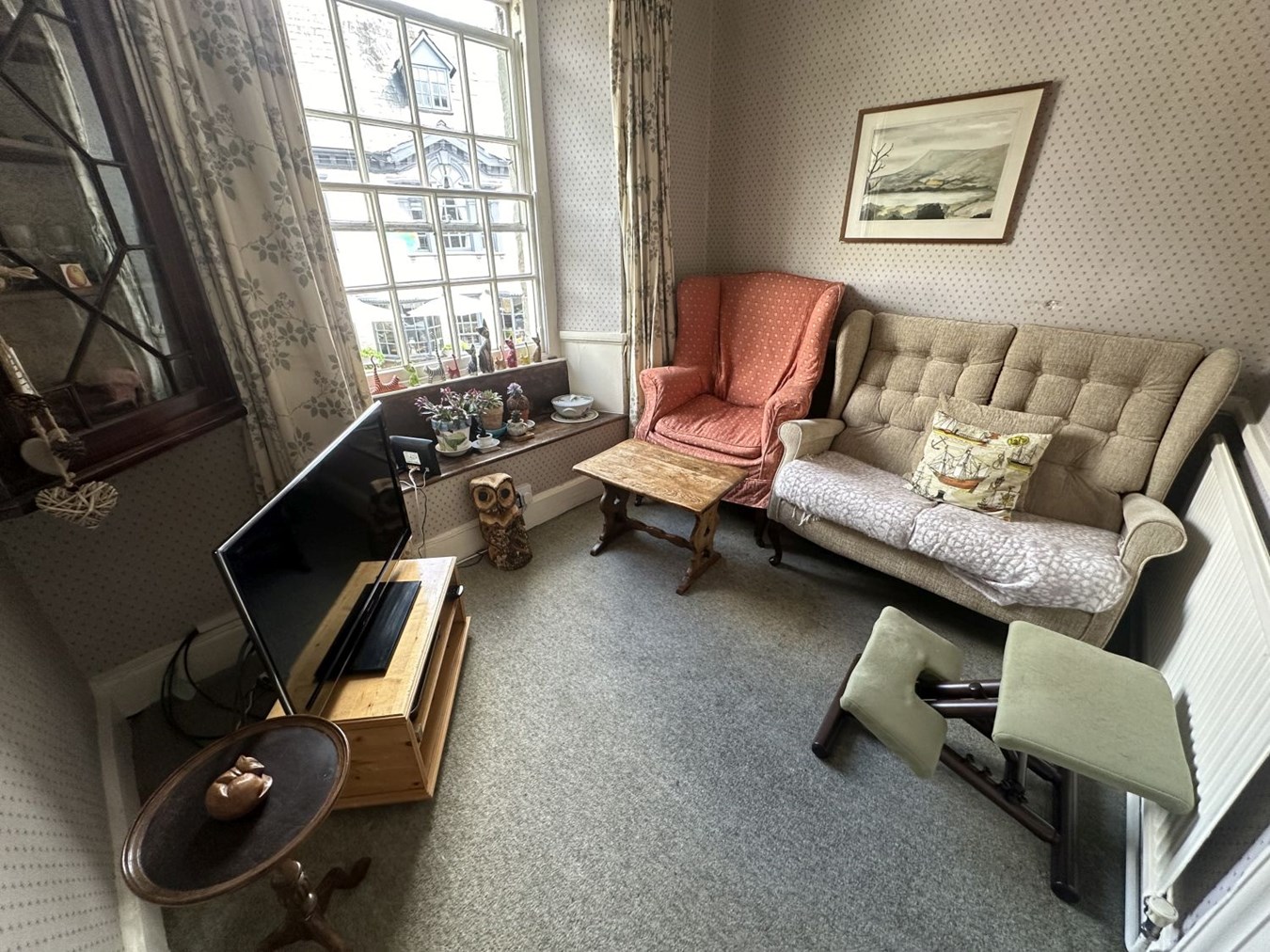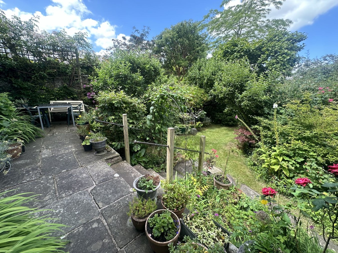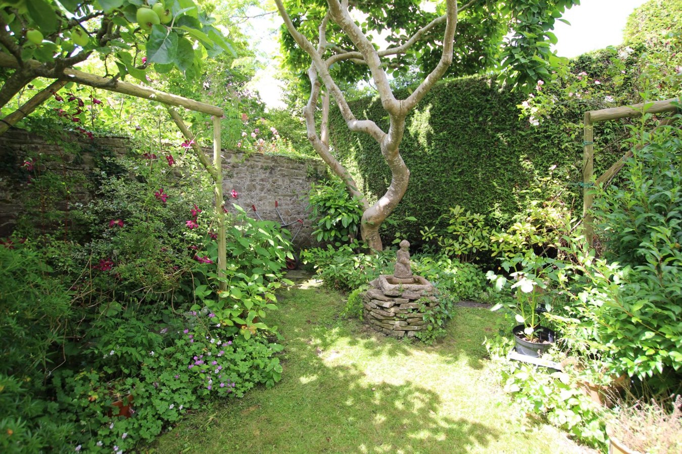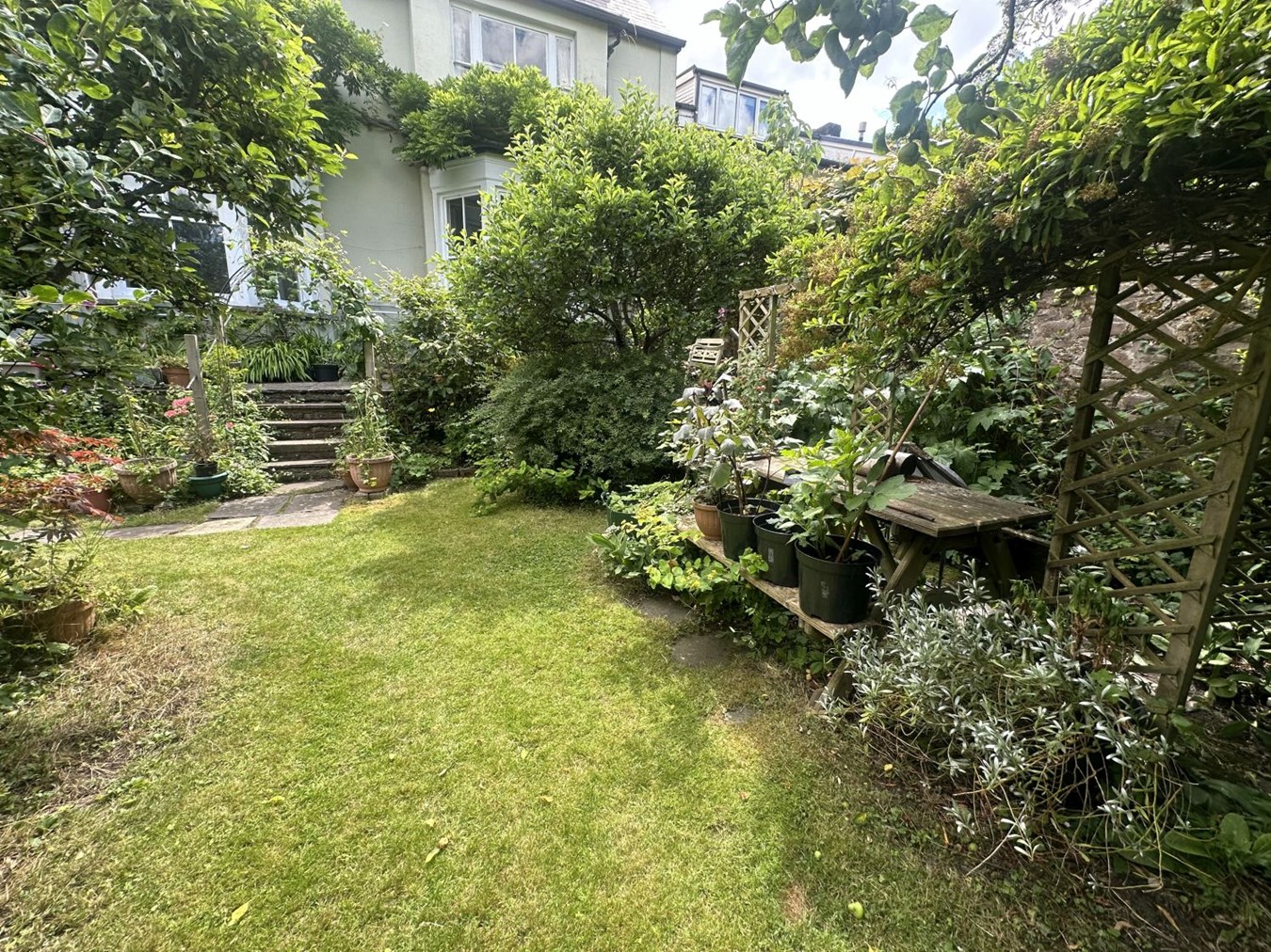 Outside, the front of the property boasts a cast iron-railed courtyard and to the side, there is a parking space for one or two cars and garage—a rare find for a town property. The rear garden is a tranquil haven, featuring a paved terrace off the kitchen with steps leading down to a lawned area. This garden is adorned with established shrub and flower borders and private seating areas. A lovely, twisting wisteria climbs the rear of the house between the bay windows. There is also access to the rear of the garage.