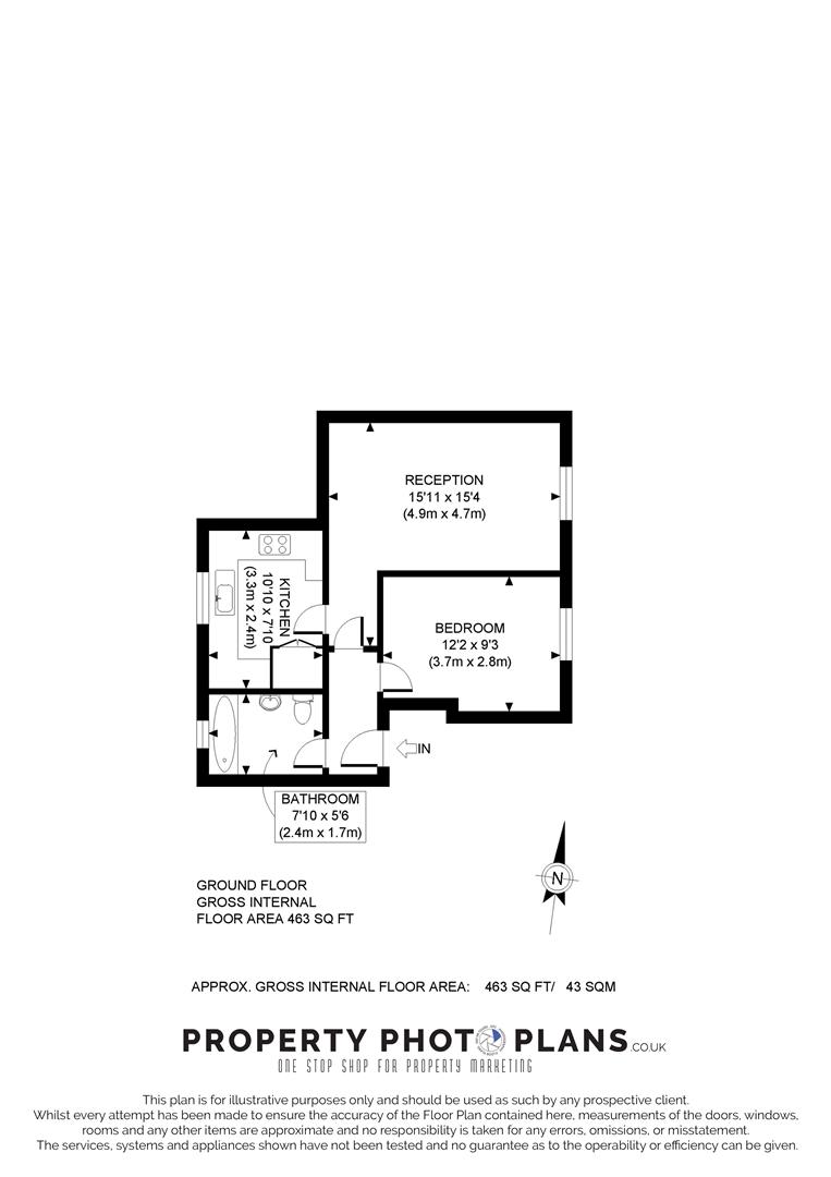 A well-proportioned first-floor studio flat (338 sq. ft.) featuring a designated sleeping area, a separate bathroom, and...