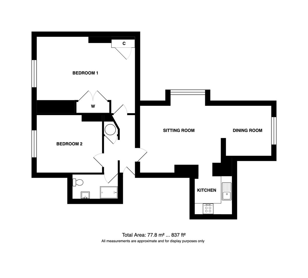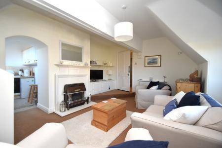 This particular apartment offers two generously sized double bedrooms, served by a sleek, modern shower room. At its heart is a welcoming sitting room with a characterful feature fireplace provideing a comfortable space to relax or entertain complemented by a cosy dining area and a well-equipped compact kitchen complete with hob and oven.
