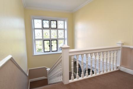 Reception Hall 10' 4" x 5' 6" (3.15m x 1.68m) overall To include a built-in linen cupboard with lagged hot water tank, fitted immersion heater and slatted shelving, intercom telephone, radiator, carpet, access to roof space.