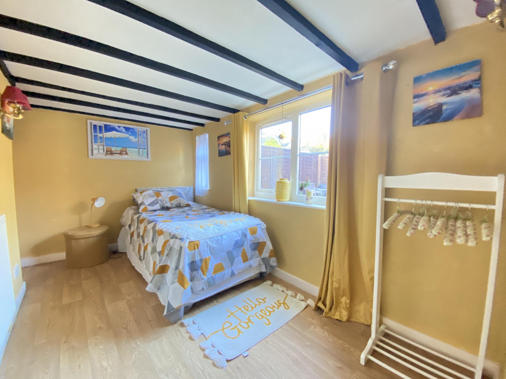 Bedroom 2 6' 9" x 12' 1" (2.06m x 3.68m) extending to 15'4 Radiator, timber effect laminate floor, exposed timbers, uPVC sealed unit double glazed windows.