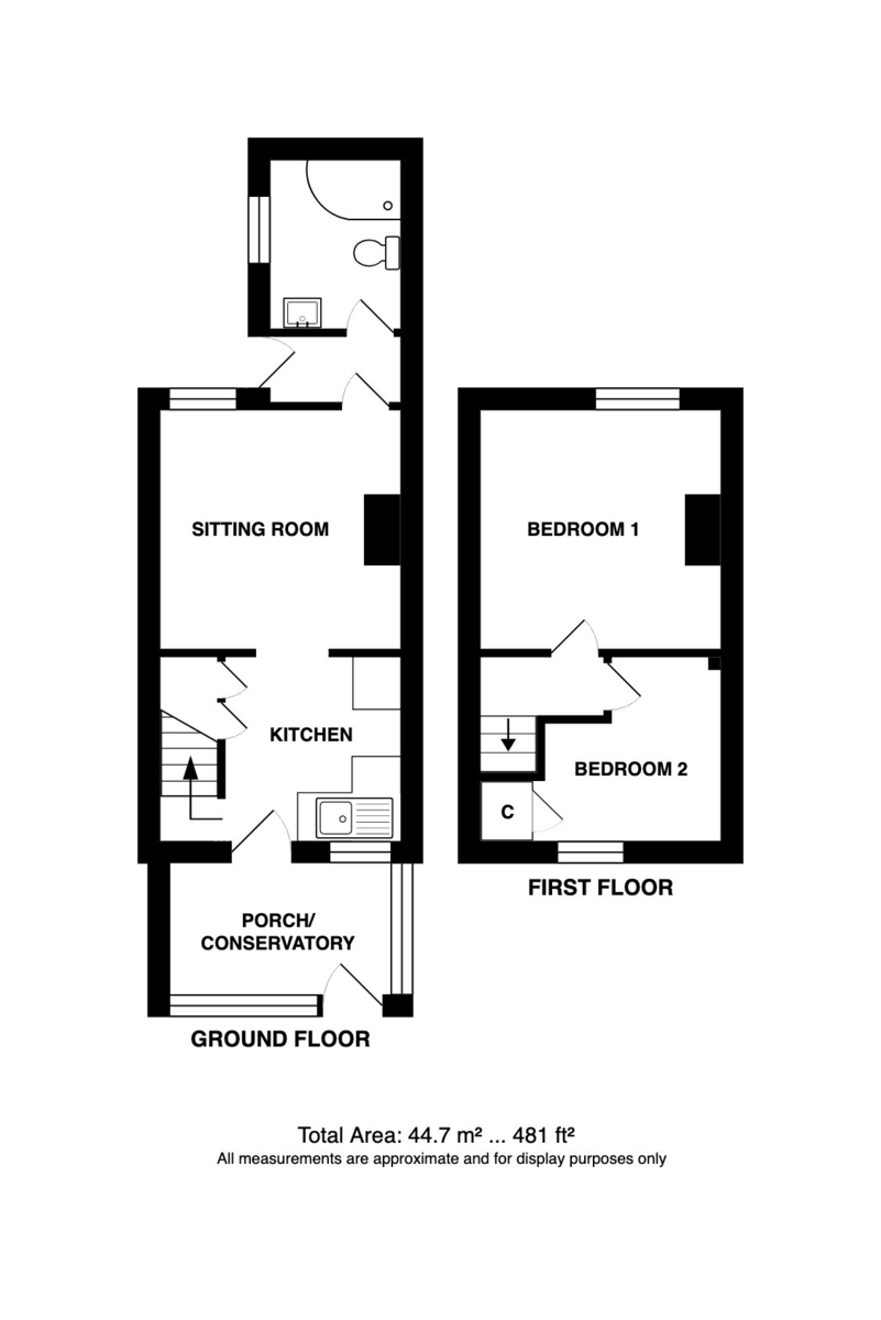 To the rear is a lobby leading to a stylish modern bathroom, thoughtfully updated to suit contemporary living. Upstairs, there are two comfortable bedrooms, ideal for a first home, weekend bolthole or downsizing move.