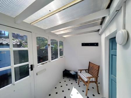 PORCH/CONSERVATORY 9' 3" x 5' 6" (2.82m x 1.68m) Cushion vinyl flooring, single glazed windows and polycarbonate roof.
