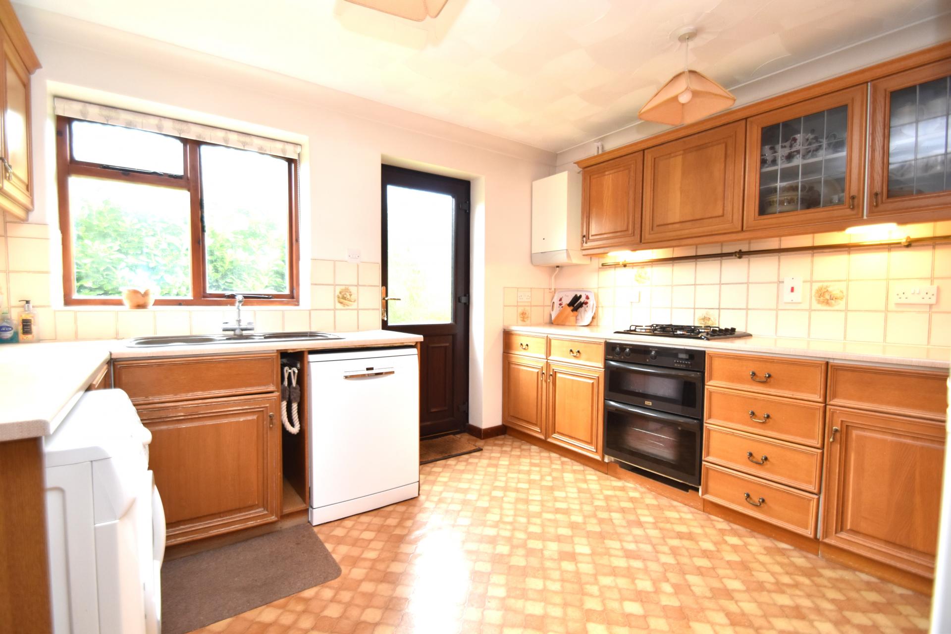 Kitchen 12' 0" x 10' 7" (3.66m x 3.23m) (Rear Aspect) Comprehensively fitted and comprising inset 1.5 bowl sink unit with mixer tap and cupboard under, space and plumbing for dishwasher, space and plumbing for an automatic washing machine, good range of base cupboard and drawer units together with shelving and work surfaces over, inset four ring gas hob and built under oven, pull out larder unit, adjacent space for an upright fridge freezer, cooker point, part tiled walls, wall mounted Ideal gas fired boiler which serves the central heating and domestic hot water, range of matching wall cupboards include corner shelves with concealed lighting under, part tiled walls, double glazed door to the rear garden, double radiator, door to the reception hall.