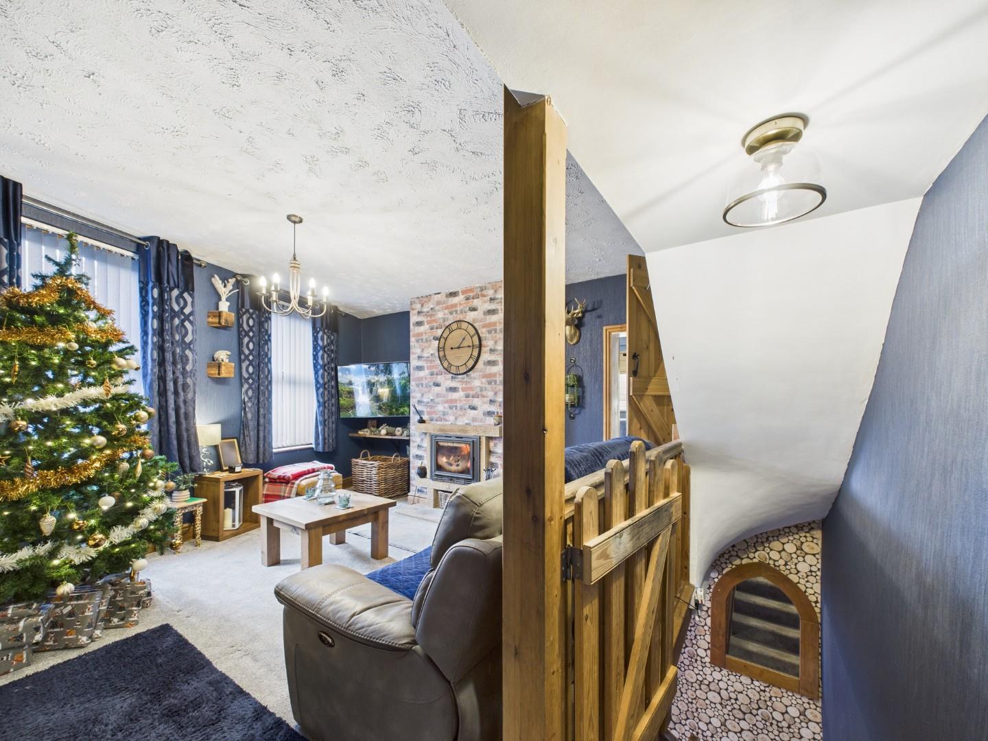 Sitting Room - 4.24 x 4.05 (13'10" x 13'3") - A warm and inviting sitting room featuring two uPVC windows to the front aspect, allowing for excellent natural light. A log burner is set within the chimney breast, creating a charming focal point and a cozy atmosphere. The room is further enhanced by fitted shelving to the chimney recess, offering practical storage and display space while complementing the character of the room.