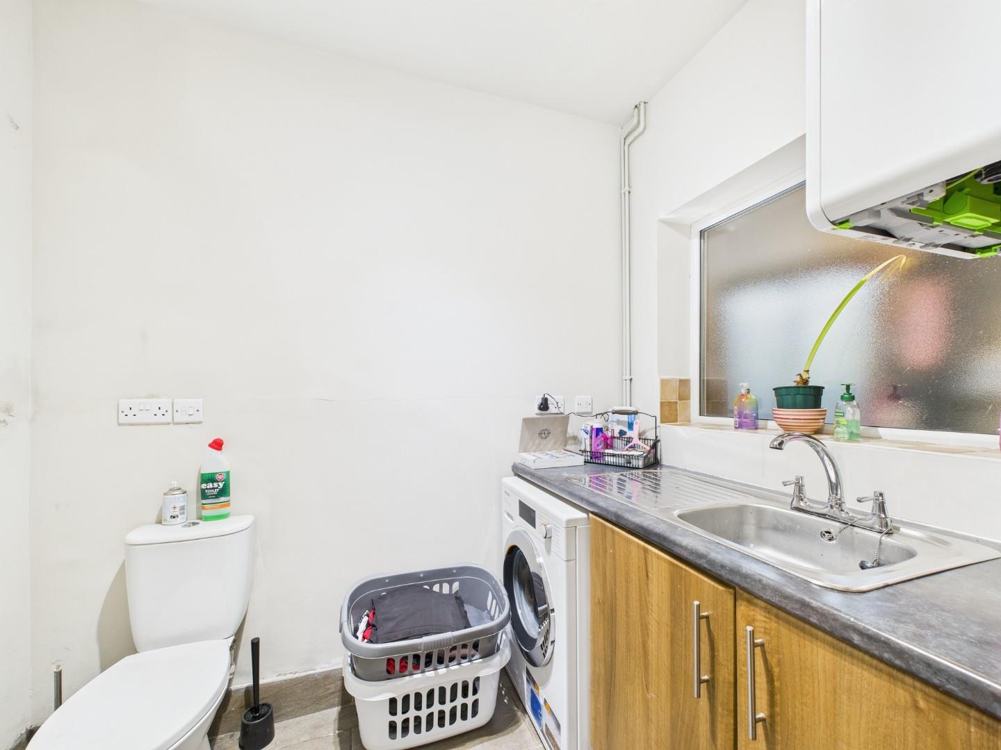 Utility Room/Guest Cloakroom - 2.22 x 1.64 (7'3" x 5'4") - A well-designed utility/WC finished with tiled flooring and worktop space incorporating a stainless steel sink and drainer with chrome mixer tap, positioned beneath an internal window looking into the store room. The area is fitted with undercounter cabinets providing useful storage, together with space and plumbing for a washing machine. The WC is equipped with a dual flush toilet and a pedestal wash hand basin. The wall-mounted modern digital Worcester boiler is located here.