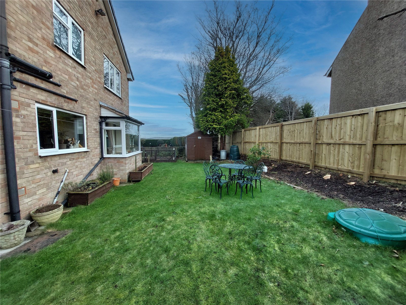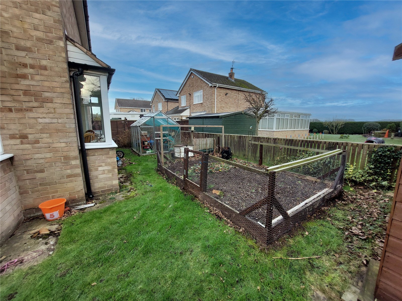 To the rear, the garden extends to three sides and is bound by a wooden fence throughout. It is mainly laid to lawn with planted flower beds which stretch along the wooden fence to the rear. There is also an enclosed vegetable patch, ideal for those who are keen on increasing sustainability