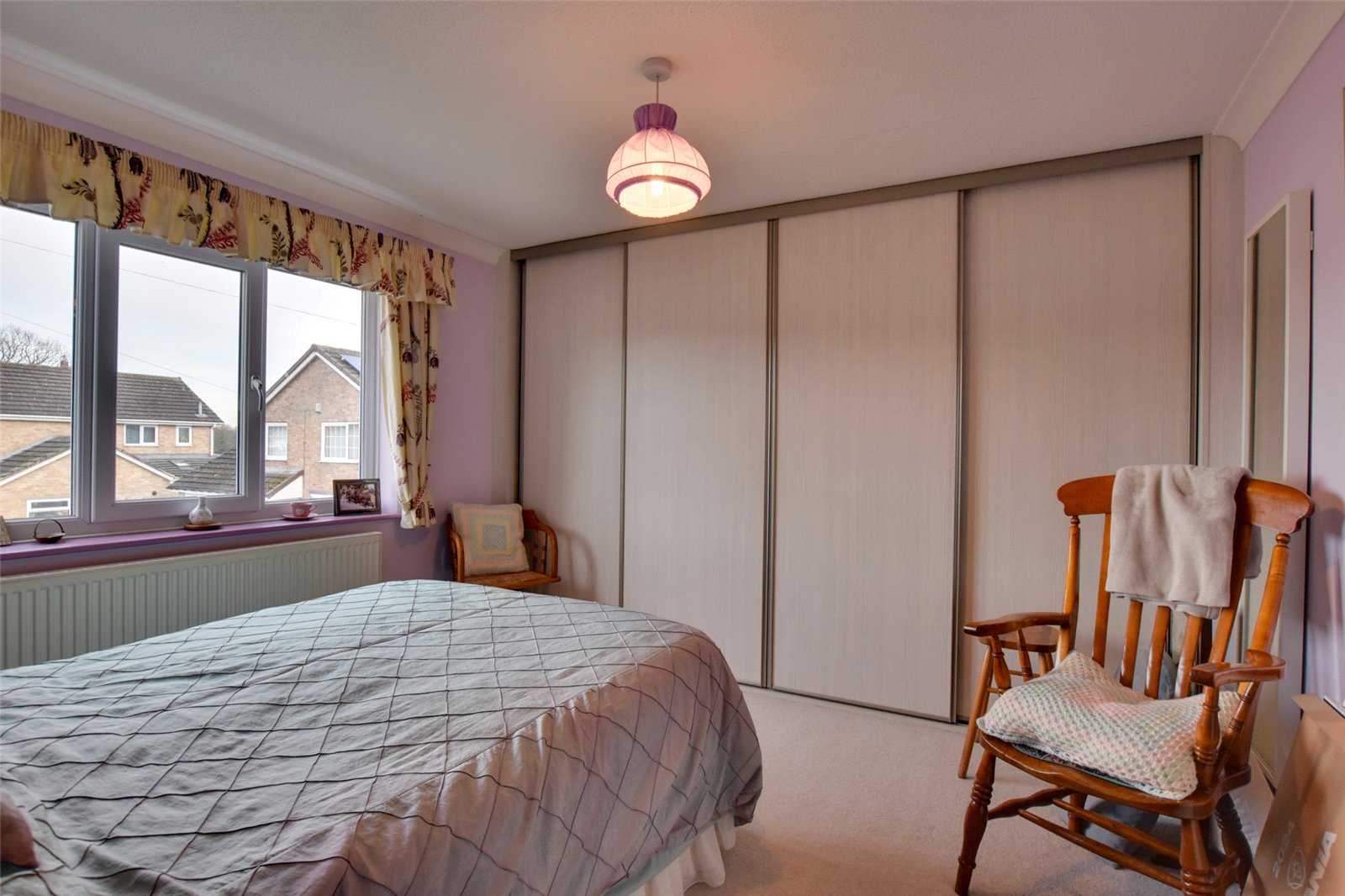To the first floor, there are three bedrooms. The main bedroom faces the front and is a good sized double with built in wardrobes with sliding doors. The second bedroom is also a generous double, facing the rear, and also offering built in wardrobes with sliding doors. The third bedroom faces the front and offers storage over the bulkhead and is a single room, ideal as a nursery, study or craft room.
