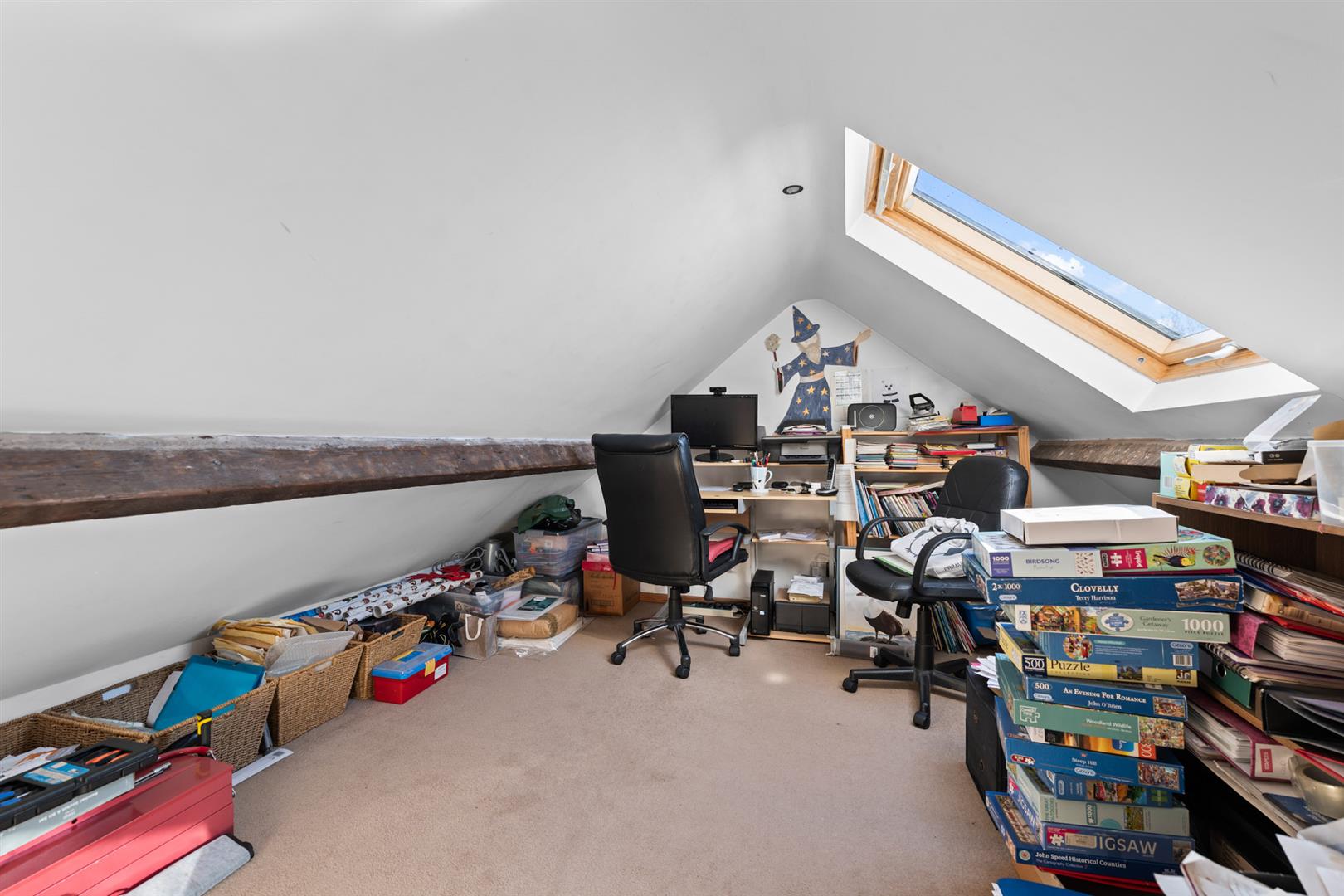 First Floor - 10.31m long x 2.18m to purlins (33'10" long x 7'2" - A really useful space situated in the eaves which, although having limited head height, does provide a useable space which has been previously both a guest room and first floor office; having pitched ceiling, inset skylights and under eaves area with loft space also housing the hot water system. The head height is approximately 6 ft. at the centre of the pitch.