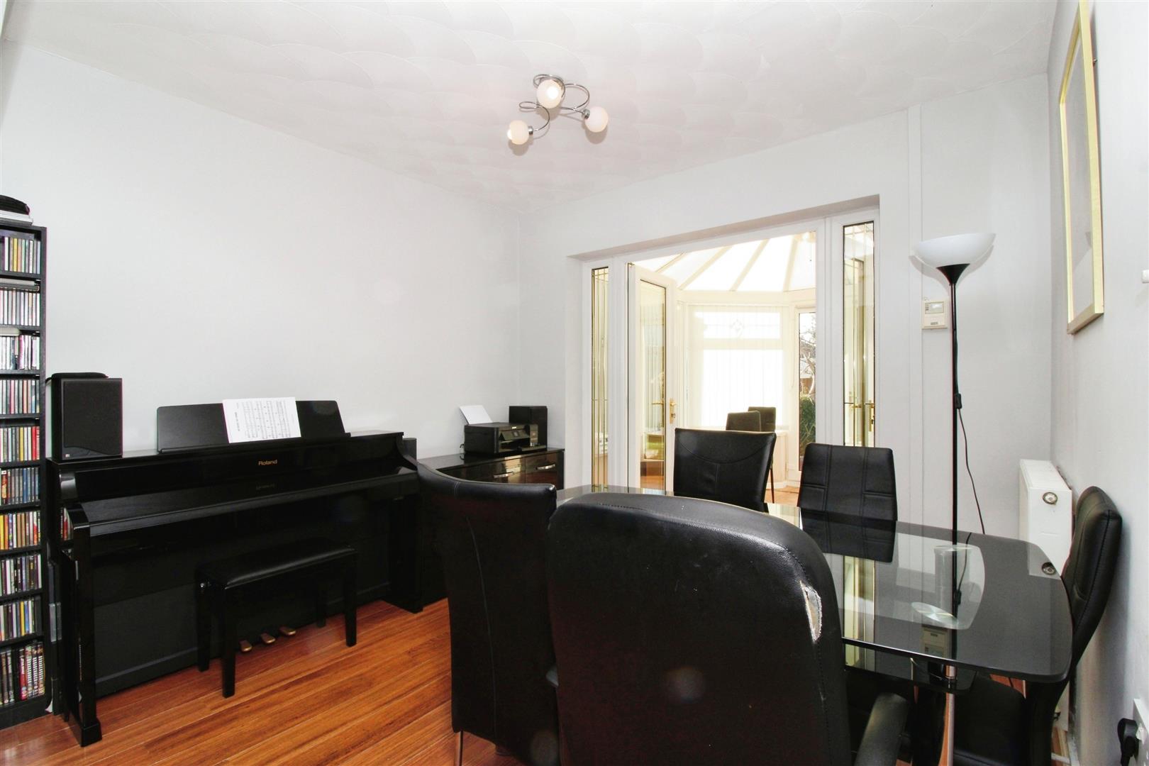 Dining Room - Radiator, laminate floor & UPVC 'French' doors.