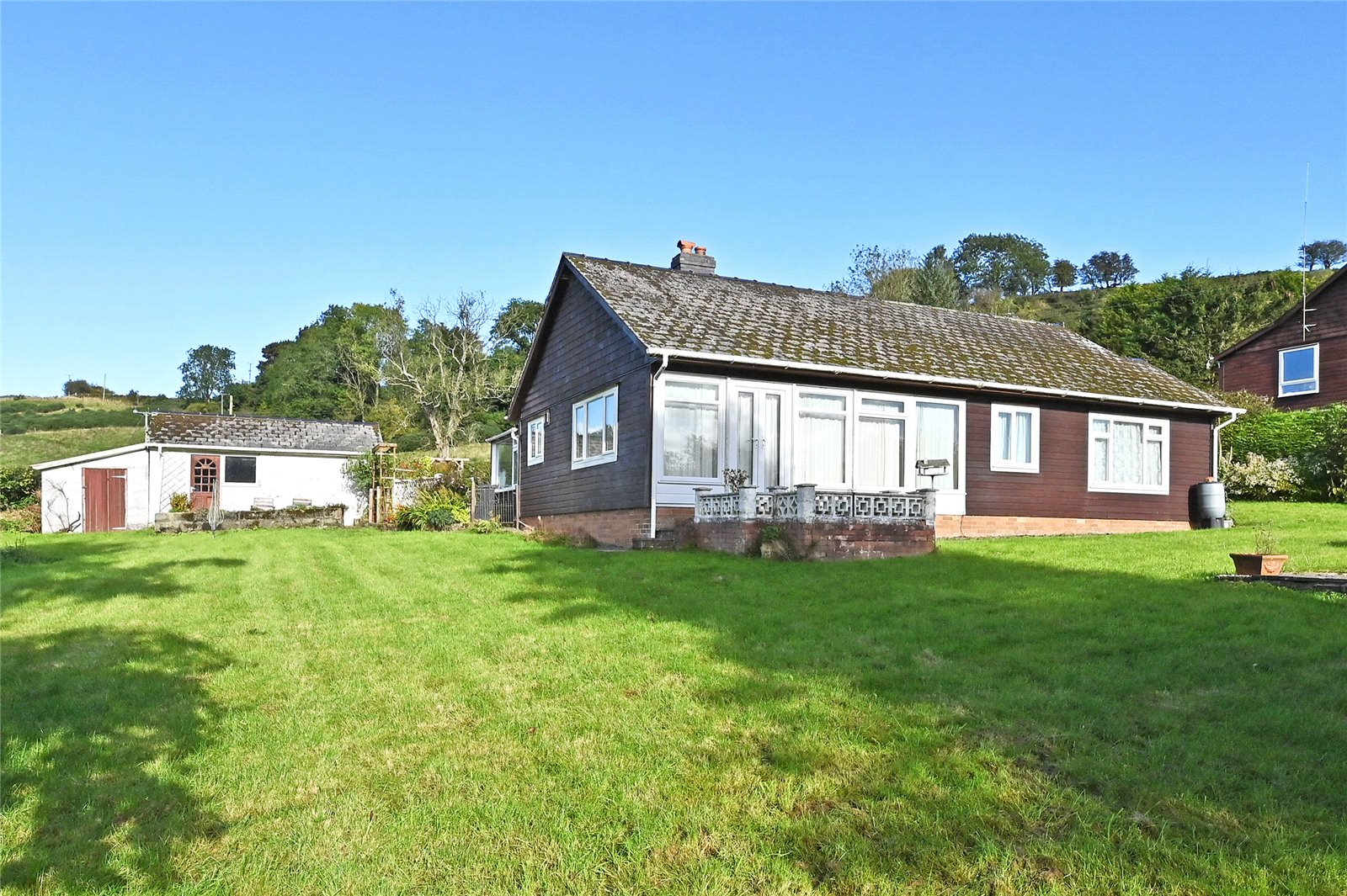 A spacious, Colt detached bungalow built around 1980 from an insulated timber frame with Cedarwood clad elevations and artificial slate roof. It has oil-fired central heating (new boiler in 2023), PVC double-glazing and briefly provides: - Entrance Hall, Cloakroom, 21’ 8” Kitchen / Diner, Conservatory, 19’ 7” Lounge, Inner Hall, two double Bedrooms, a Single Bedroom and Shower Room. In addition there is a tarmac parking area, detached Garage, Stores and about third of an acre of mature gardens incorporating gently undulating lawns, three patios, a pond, flower borders, evergreen and flowering shrubs, soft fruit bushes and vegetable beds. Council Tax - Band E EPC - D ( 55 ) Note: Limited availability of mortgages on this structure.