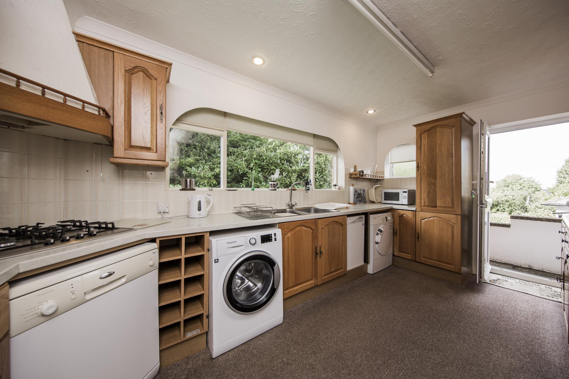 KITCHEN: A traditional style kitchen fitted with a range of high and low level wooden units with feature lighting, roll top work surfaces, breakfast bar with seating underneath and a double stainless steel sink with swan mixer tap. Appliances include a fan assisted oven with grill above, 4-ring gas hob, a washing machine, tumble dryer, dishwasher and tall fridge freezer. Ideal Mexico HE 18 floorstanding boiler, fitted carpet, part tiled walling, window with fitted blinds overlooking the garden and double glazed stable door to the side with access to the rear garden and garage.