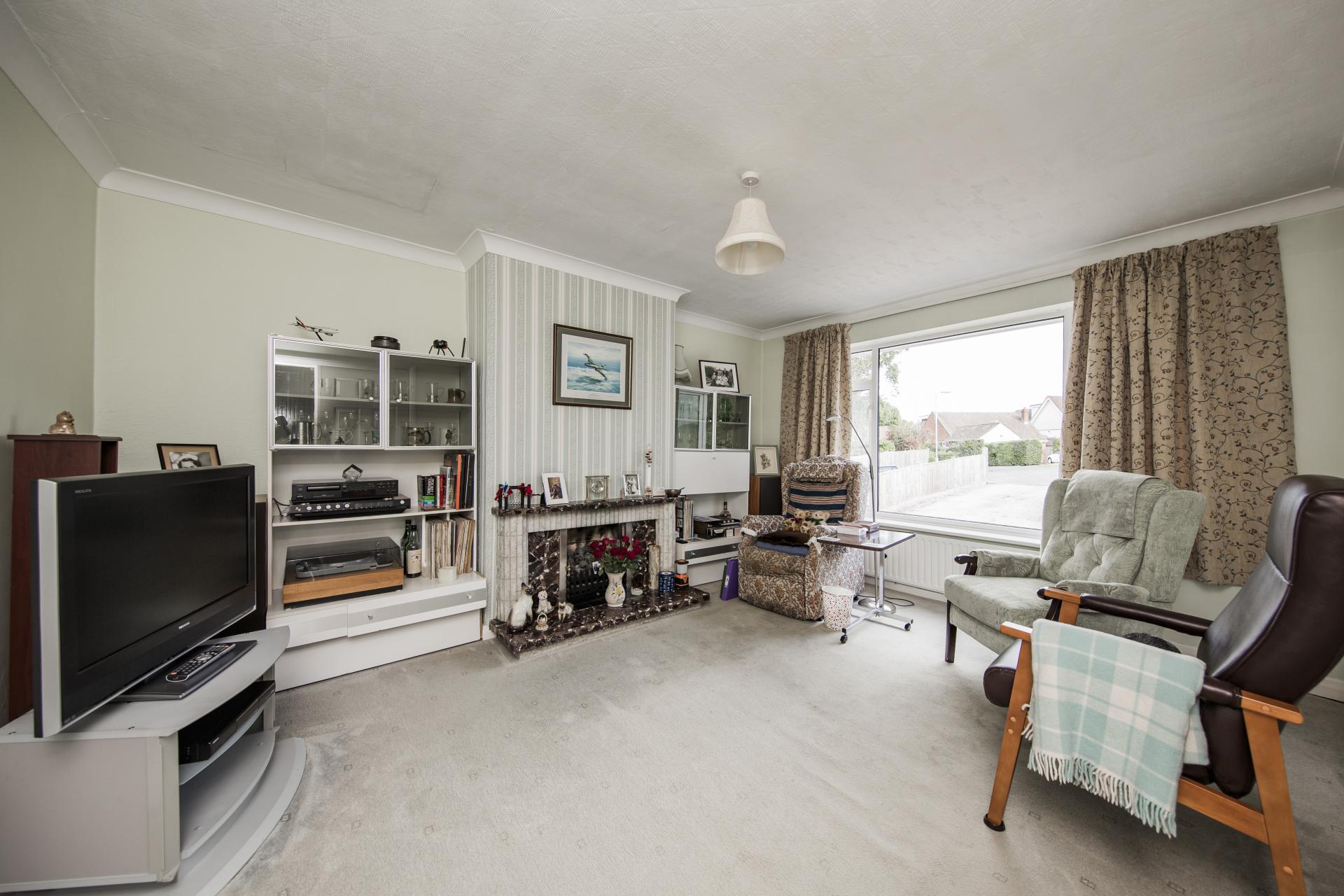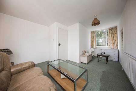 SITTING ROOM: Attractive non-working gas fire with marble hearth, cheeks and mantle. Fitted carpet, three radiators and large picture window to front.
