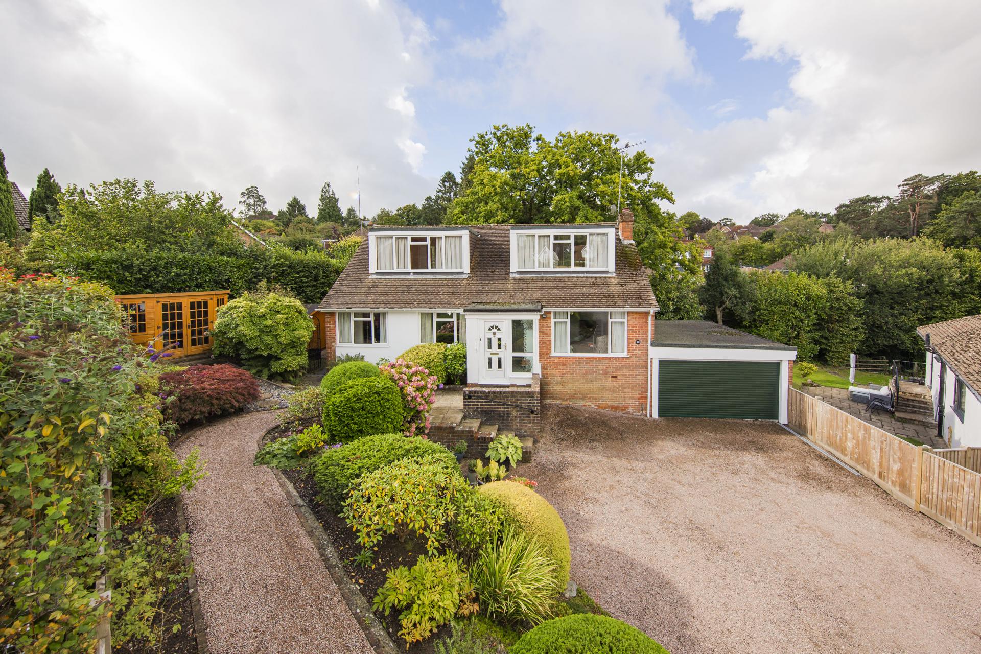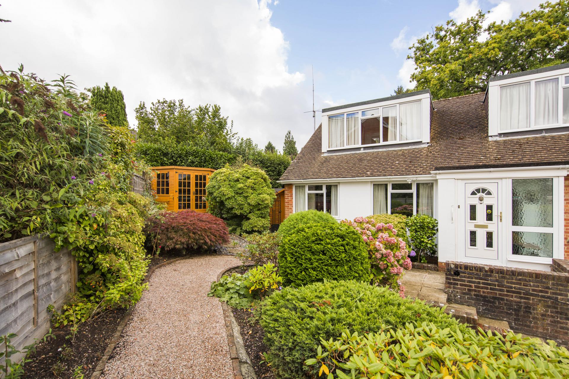 OUTSIDE FRONT: Large gravel driveway provides off-road parking for numerous vehicles and a beautifully maintained mature raised garden features flower bed borders and established plants to include Rhododendrons, Azaleas, Camellia's and Acers. A pathway leads up to a corner summer house which has fabulous far reaching views towards the Ashdown Forest.