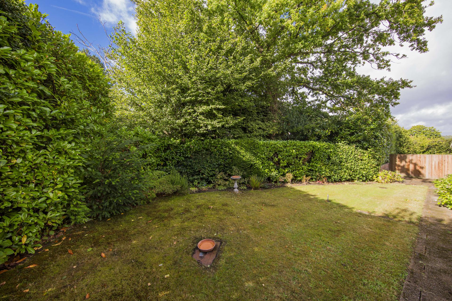OUTSIDE REAR: Private rear garden is mainly laid to lawn with a selection of flower bed borders, mature trees, patio area and a wooden shed.