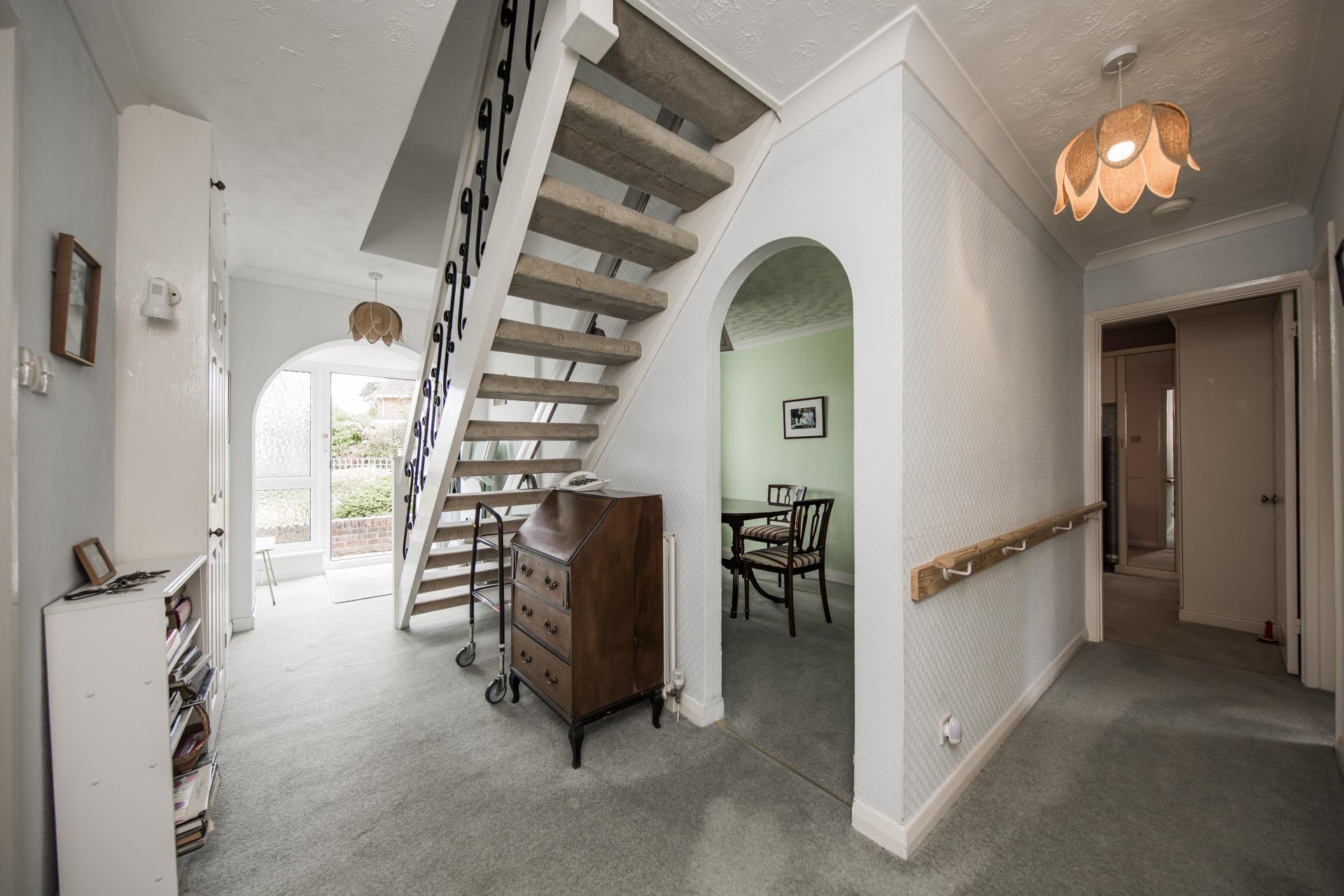 A well presented chain-free detached house, tucked away at the end of a quiet cul-de-sac in a sought-after residential area. The property features an open porch, suitable for hanging coats, which leads through an archway into a welcoming entrance hall. The spacious sitting room boasts a charming marble fireplace, while the dining room comfortably accommodates a large dining table. The well-appointed kitchen includes a range of standard appliances and enjoys a lovely outlook through a large window over the rear garden and also direct access down some steps to the rear garden. The ground floor offers two generous bedrooms and a modern family shower room. Upstairs, the first floor was formerly used as an annex, offering fantastic flexibility to adapt the space to your needs. It comprises two double bedrooms, one of which connects to a third single bedroom or potential dressing room. This upper level also includes a small utility area, accessible via bi-fold doors, which could easily be converted into an en-suite. Outside, the property benefits from beautifully maintained mature gardens to front and rear. off road parking and access to a double garage.This property offers an excellent opportunity for a family to personalise the home, as it would benefit from some updating and modernisation.