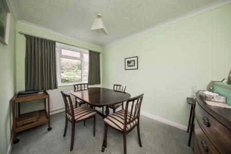 DINING ROOM: Plenty of room for a large dining table and chairs, fitted carpet, radiator and window overlooking front garden.