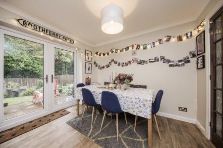 KITCHEN/DINING ROOM: Range of beautifully fitted base units with worktops/splashbacks over incorporating a one and half bowl ceramic sink with mixer tap,. Appliance space available for a range cooker, fridge/freezer and dishwasher. Amtico flooring, window to rear and double doors opening to the rear patio and garden beyond.