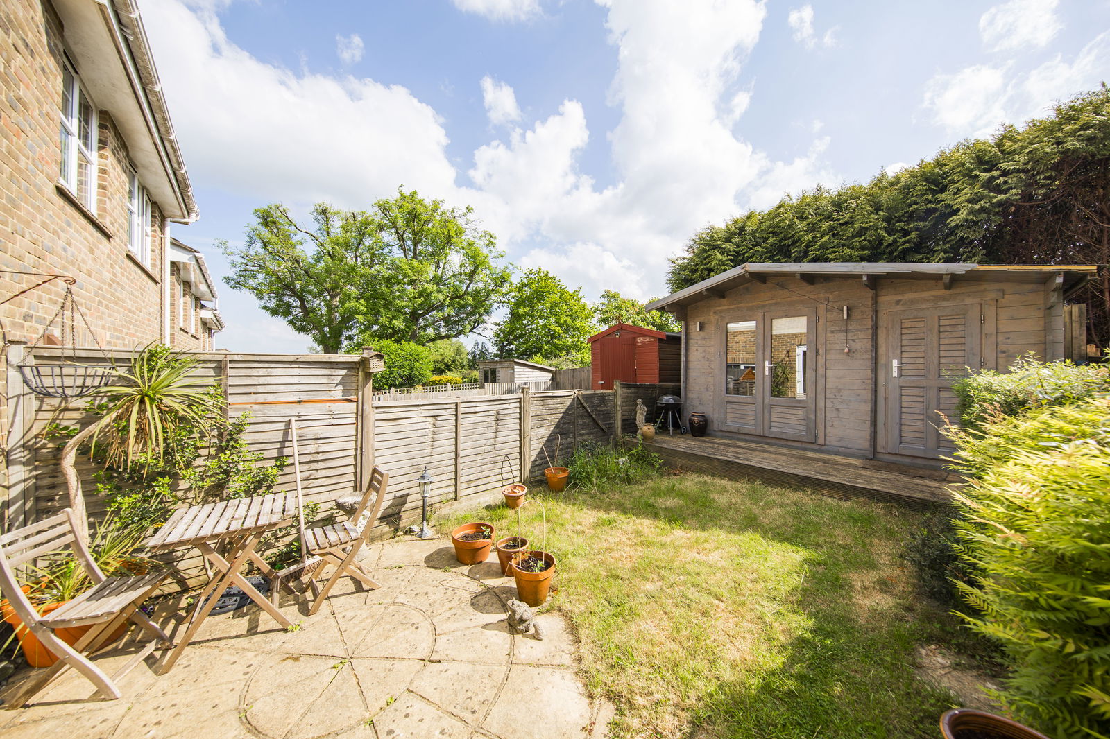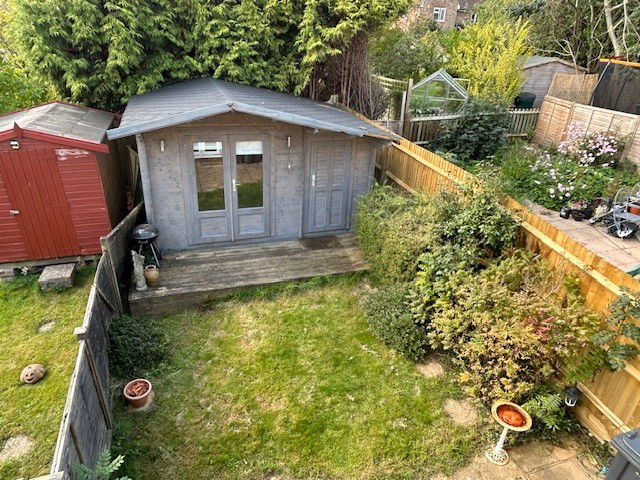 OUTSIDE REAR: A westerly facing garden benefiting from a patio adjacent to the property. The remainder of the garden is laid to lawn and located to the rear of the garden is a good size summerhouse and store with power and light which could be used as an outside office/gym. Timber gate to side.