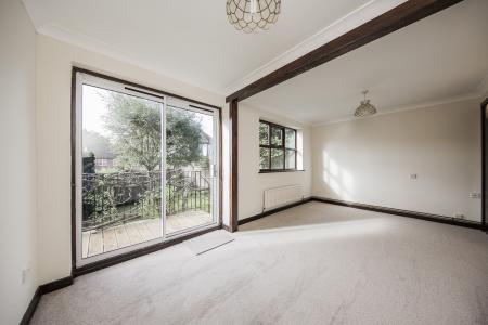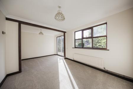 Plenty of room for a large breakfast table and chairs, recently laid floor tiling, radiator and sliding doors lead out to the decked terrace.