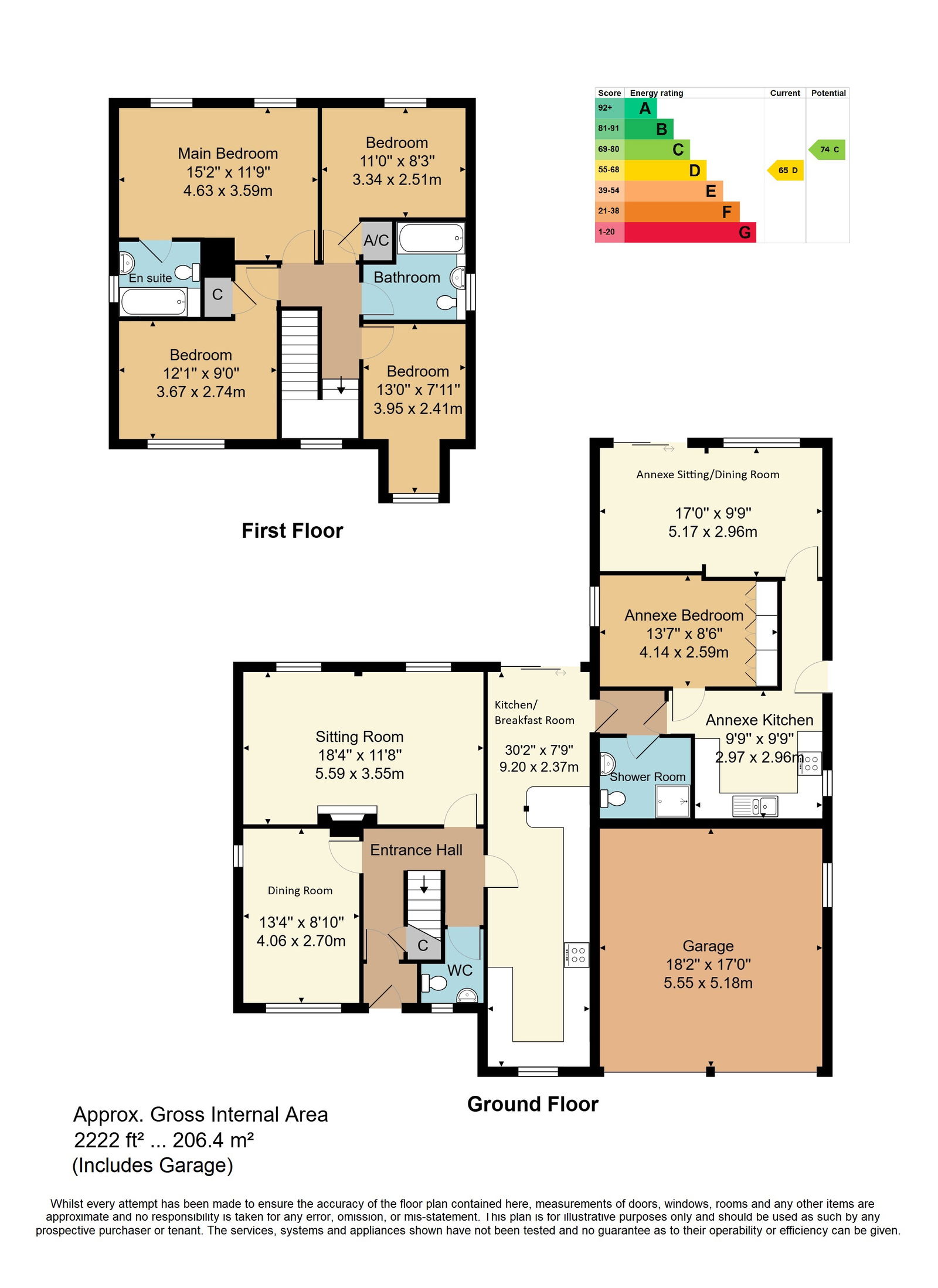 - 2 Bathrooms + 1 Shower Room