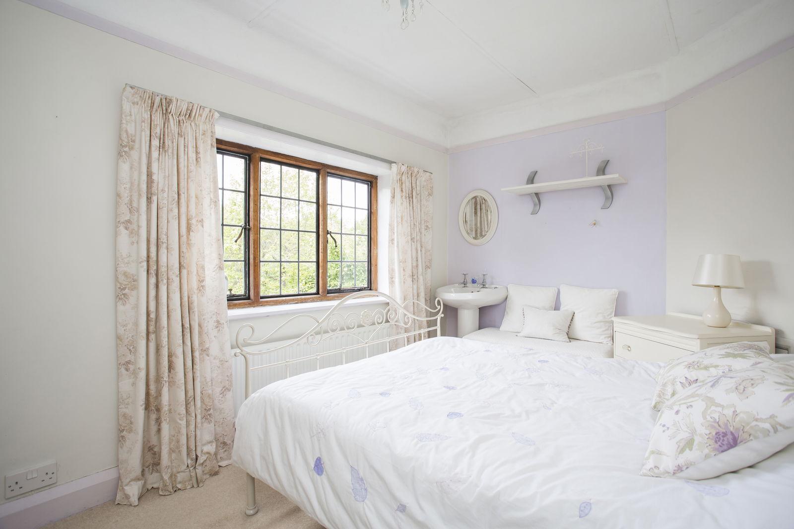 BEDROOM: Pedestal wash hand basin, carpet as fitted, radiator and window to rear.