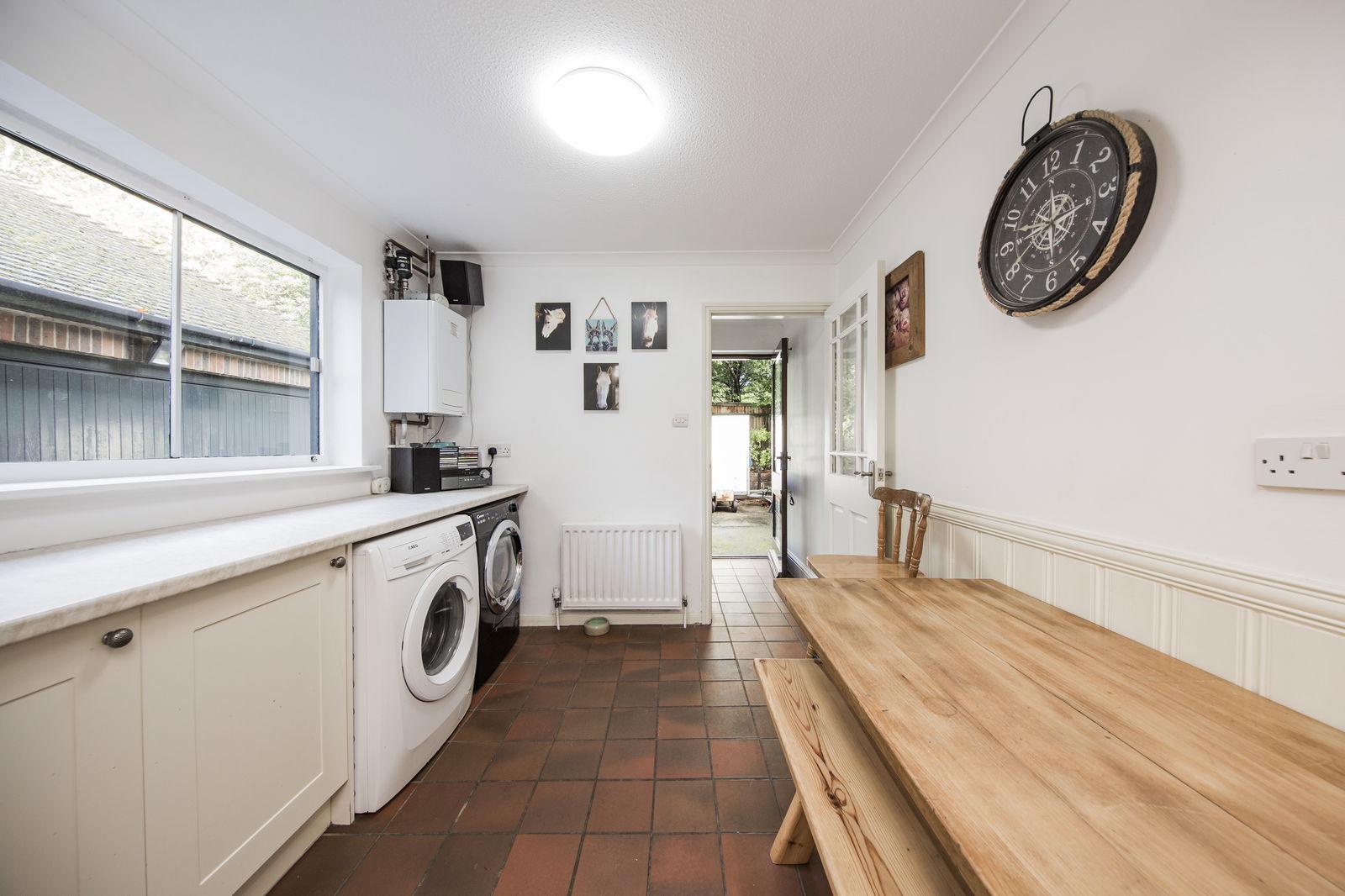 Additional base unit with worktops over, space for washing machine and tumbler dryer, wall mounted British Gas boiler, radiator, quarry tiled flooring, window to rear, access to lobby and wc and door to side return.