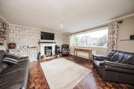 SITTING ROOM: Recessed feature fireplace with flagstone hearth, wood bressumer and space for wood burning stove, parquet flooring, radiator and large window to front.