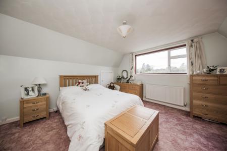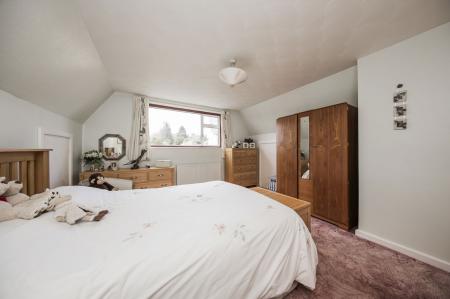 BEDROOM: Fitted wardrobe, two eaves storage cupboards, fitted carpet, radiator and window to front.