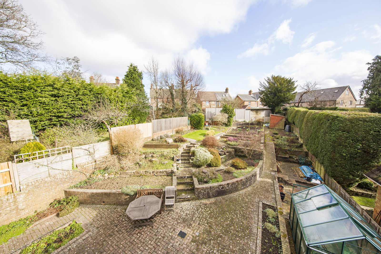 OUTSIDE REAR: The rear garden enjoys a large brick paved patio adjacent to the property suited for outside seating and entertaining. The remainder of the garden is predominately paved and set over levels with some areas laid to lawn, various raised flower bed borders, a rockery and a selection of mature planting. In addition is a recently installed greenhouse, large vegetable patch, good size garden shed and lovely rooftop views from the very top of the garden.