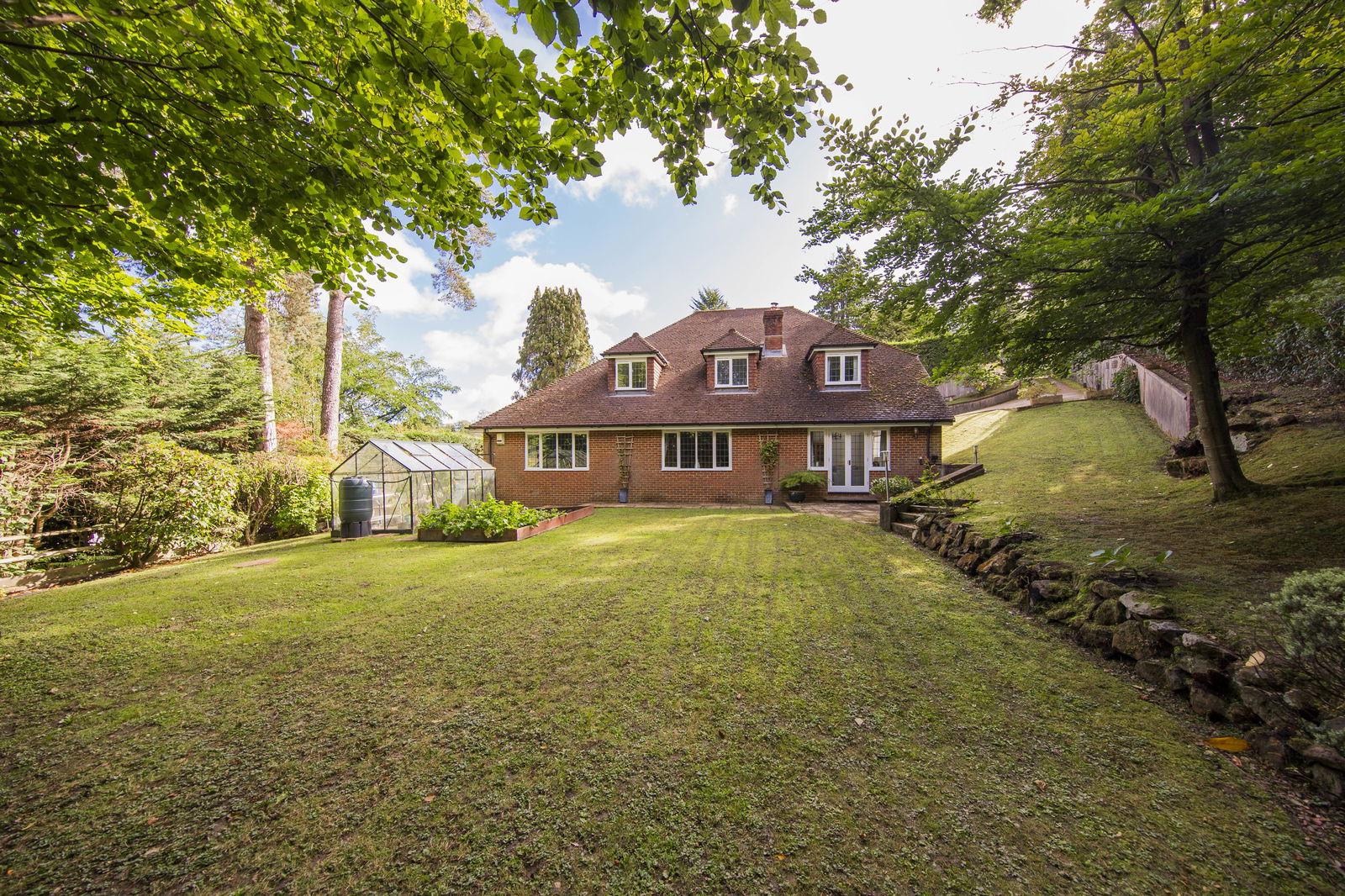 OUTSIDE: The property is approached via a fire bar gate with access to the driveway providing off road parking and access to a double garage. Gardens surround the property and are principally laid to lawn with a greenhouse and raised bed vegetable area. In addition behind the garage is a patio providing a seating area with a selection of raised bed borders and a soft fruits area.