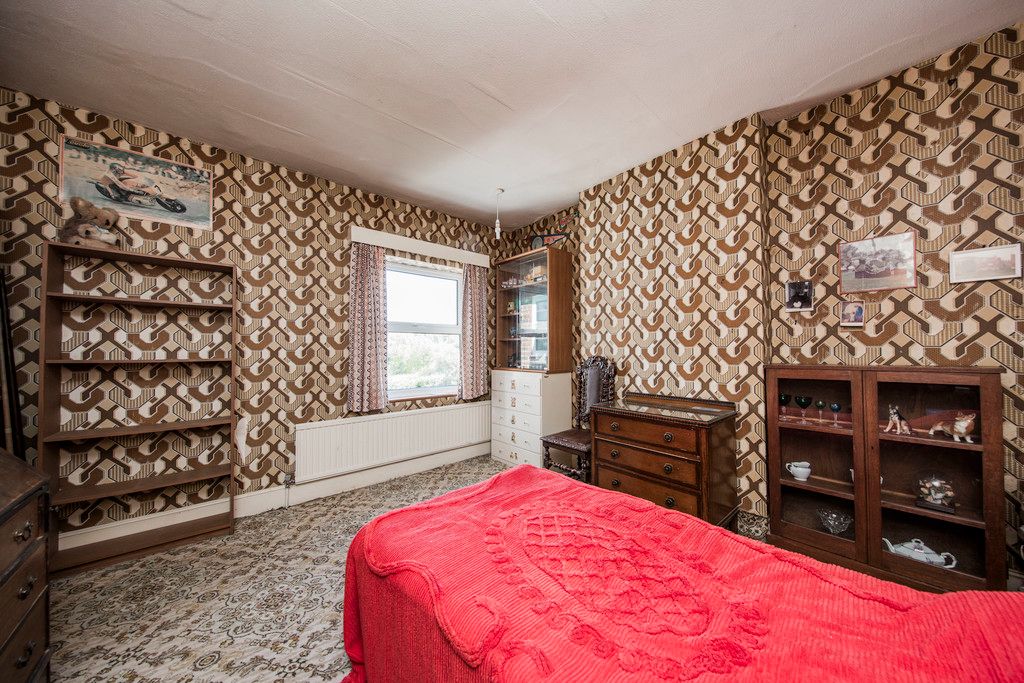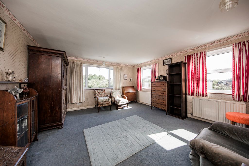 Potential to add a small shower room and currently comprising a corner wash hand basin with tiled splashback and the glass mirror above. Fitted carpet, two radiators, two windows to side offering far reaching treetop views and additional large picture window to rear overlooking the garden with woodland and far reaching views to the side.