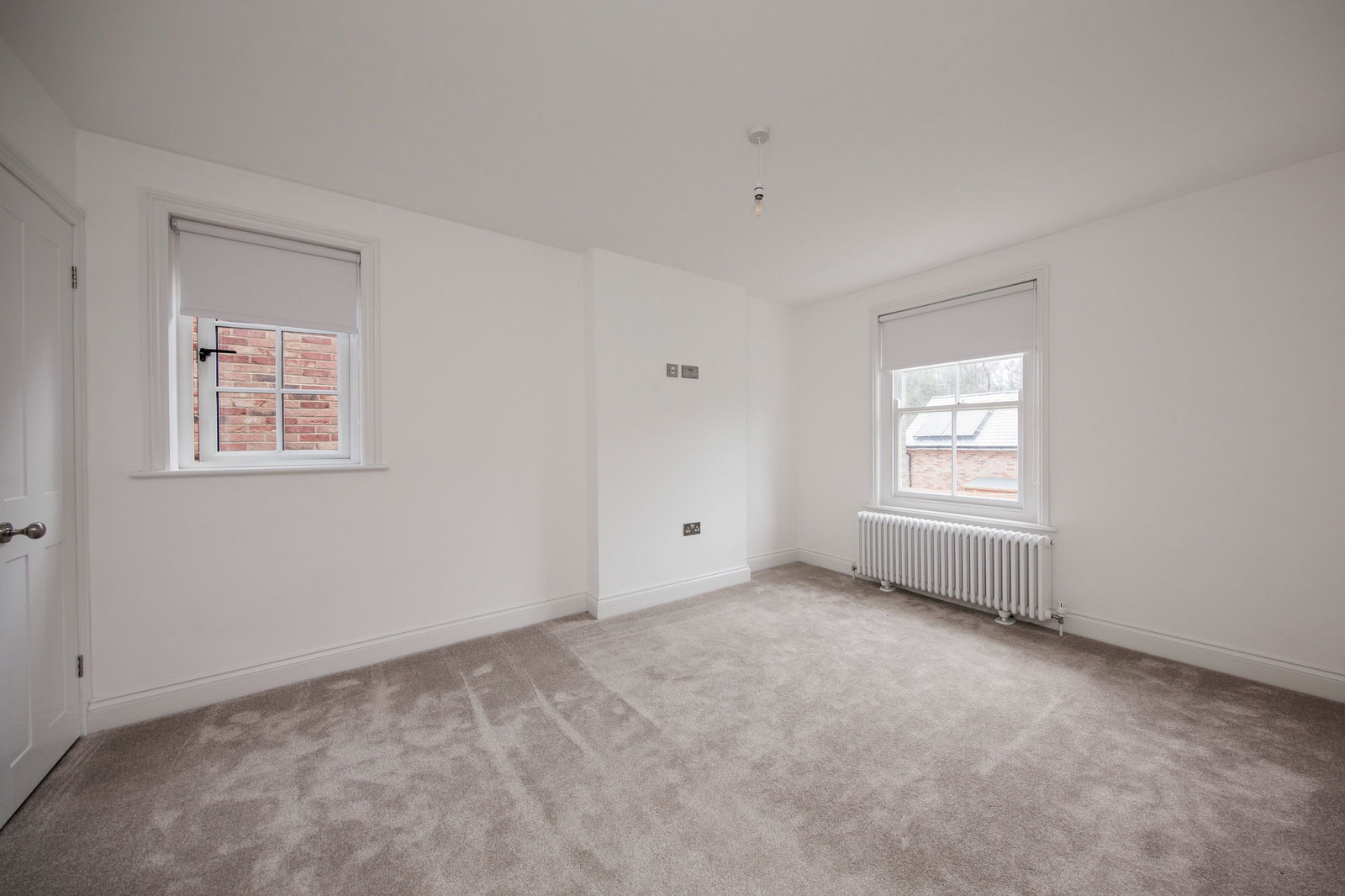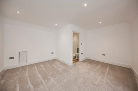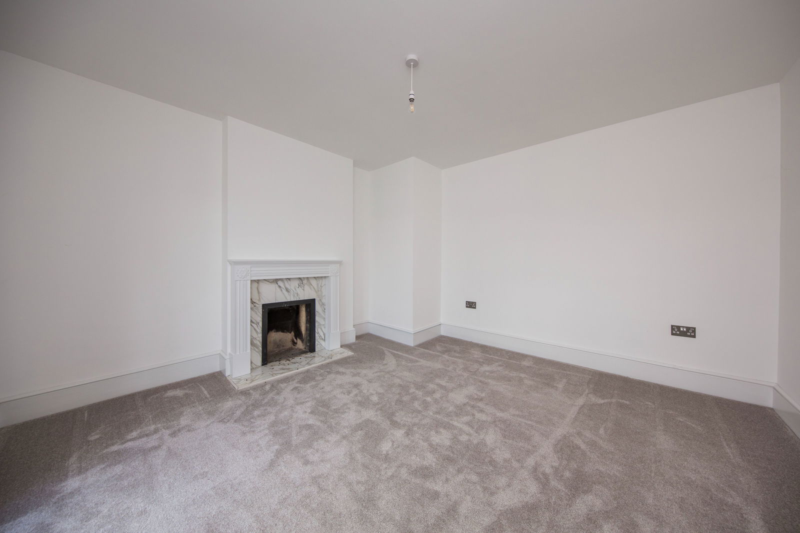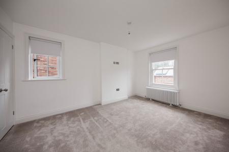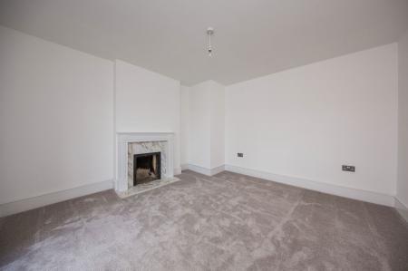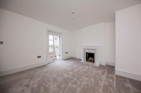 Feature fireplace with wood mantel, marble cheeks and hearth. Radiator, carpet as fitted and double French doors open to a roof terrace with iron balustrade and views over countryside,