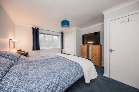 Two double fitted wardrobes, recently fitted carpet, radiator, window to the front with fitted blind and curtains and door into: