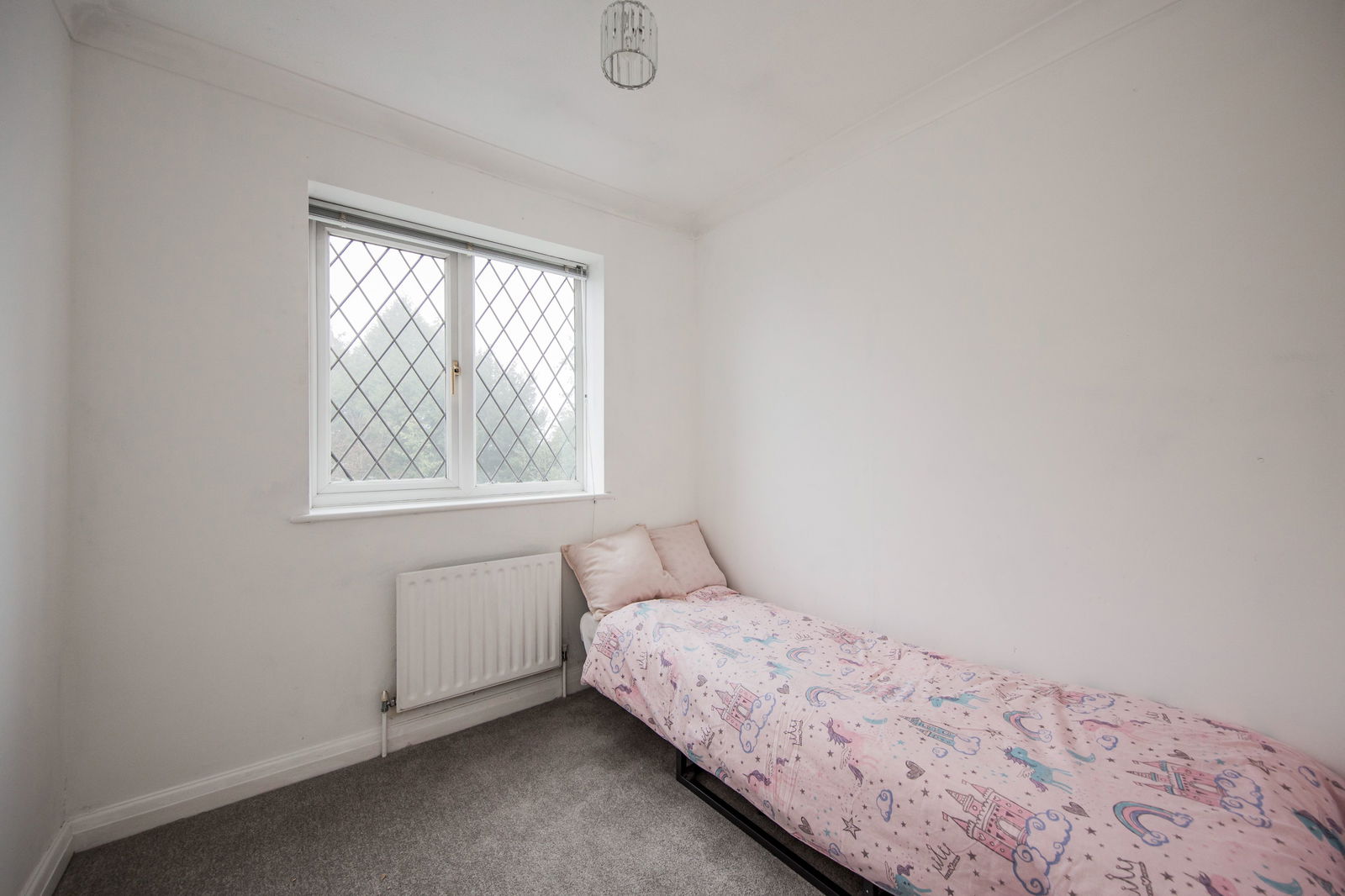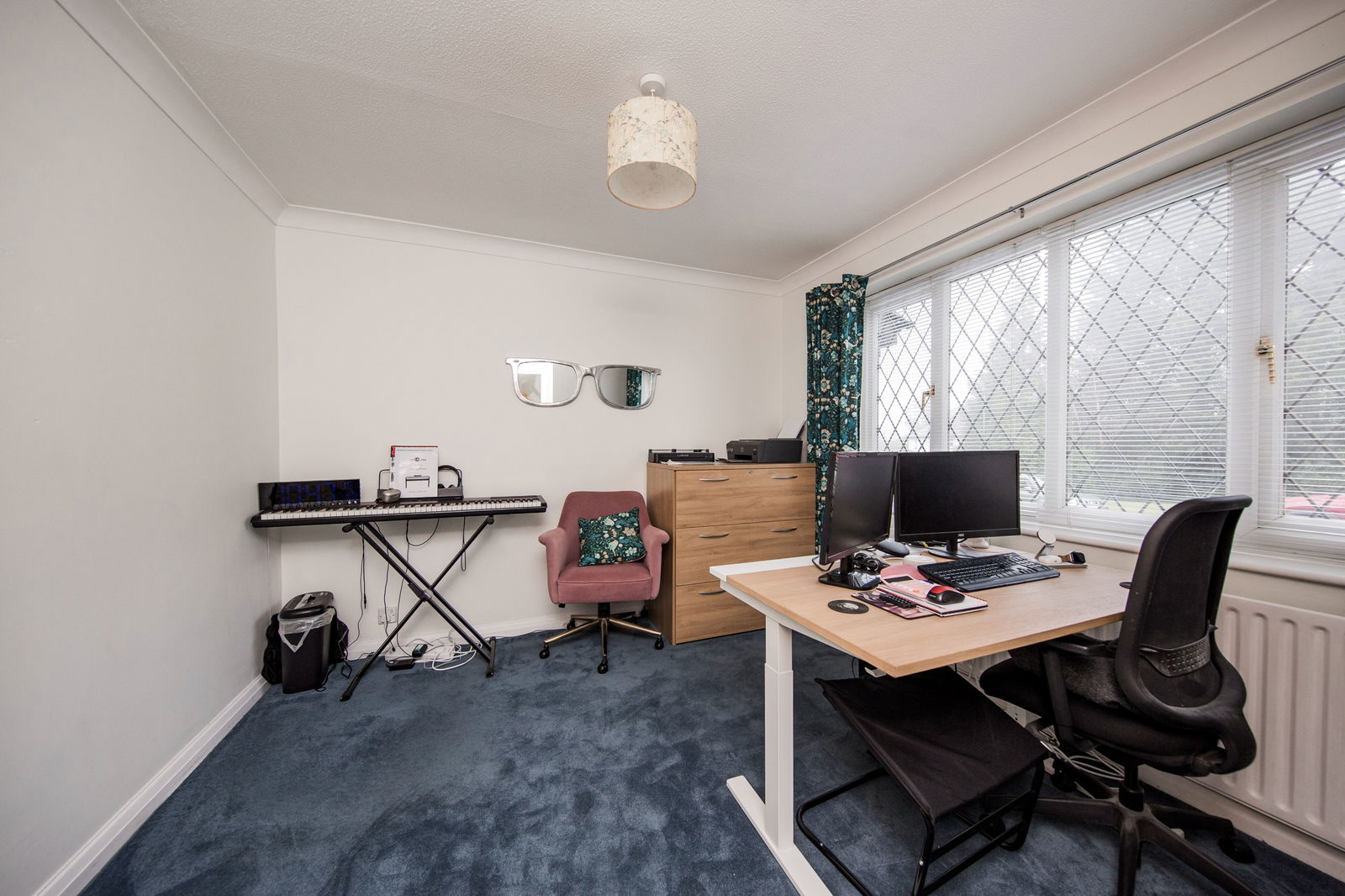 Currently used as an office/music room with a recently fitted carpet, radiator and window to the front with fitted blind and curtains.