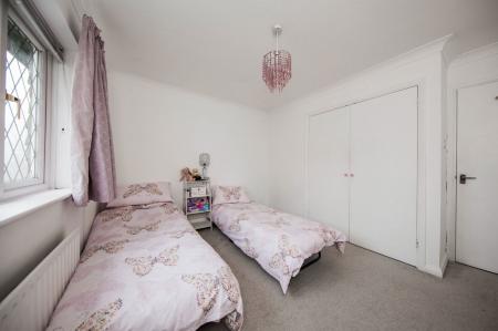 Double fitted wardrobe, recently fitted carpet, radiator and window to the front with fitted blind and curtains.