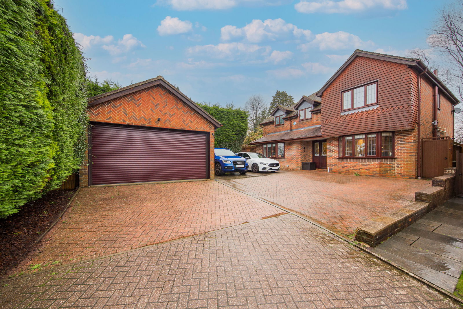 Hidden away down a long private driveway to the fringes of Crowborough is this individual detached family house. The well appointed accommodation comprises a welcoming entrance hall, shaker style kitchen, a wc and a study. In addition is a good size dining room with access out to a patio and a well proportioned dual aspect sitting room with feature fireplace and direct access out to the rear garden. Stairs rise with access to the integral garage and continues up to the first floor landing where you will find the main bedrooms with modern en suite shower room, three further bedrooms and a family bathroom. Externally the extensive rear garden is a particular feature with some woodland views, large expanse of lawn and various patio areas suited to outside entertaining. A tree lined driveway leads to the property where you will find an area for off road parking and access via bifold doors into the garage.