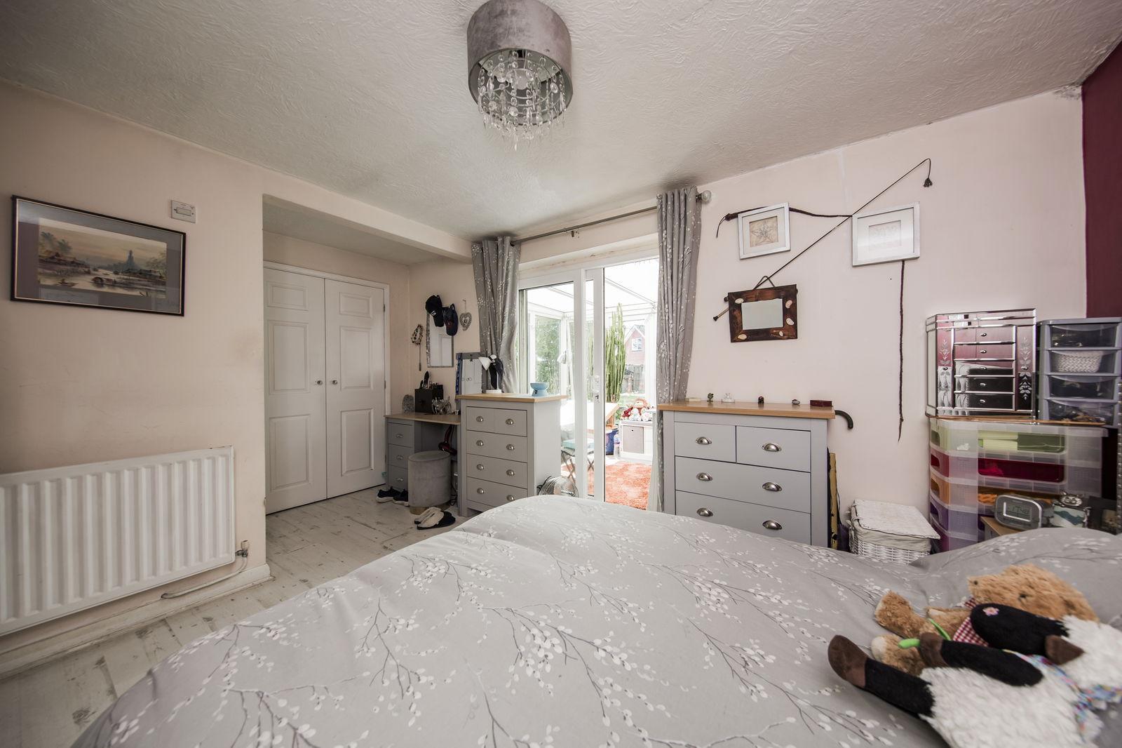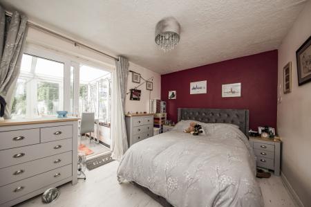 BEDROOM: Double wardrobe, light wood effect laminate flooring, radiator and doors to en suite and conservatory.