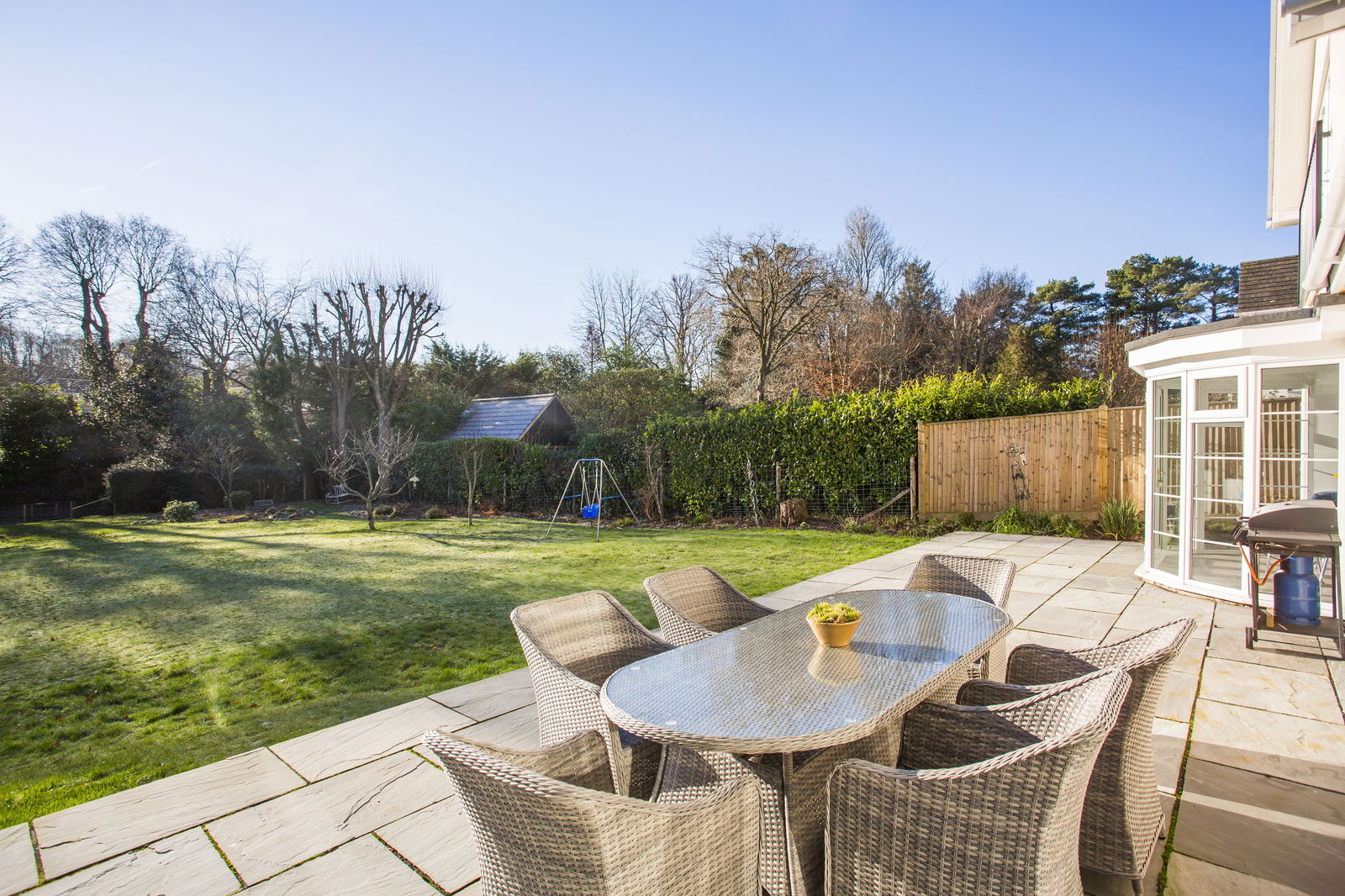Benefiting from a southerly facing aspect the garden includes a good size slate patio with exterior lighting, ideal for outside entertaining and a large expanse of lawn. In addition is a further patio area and a large garden shed.