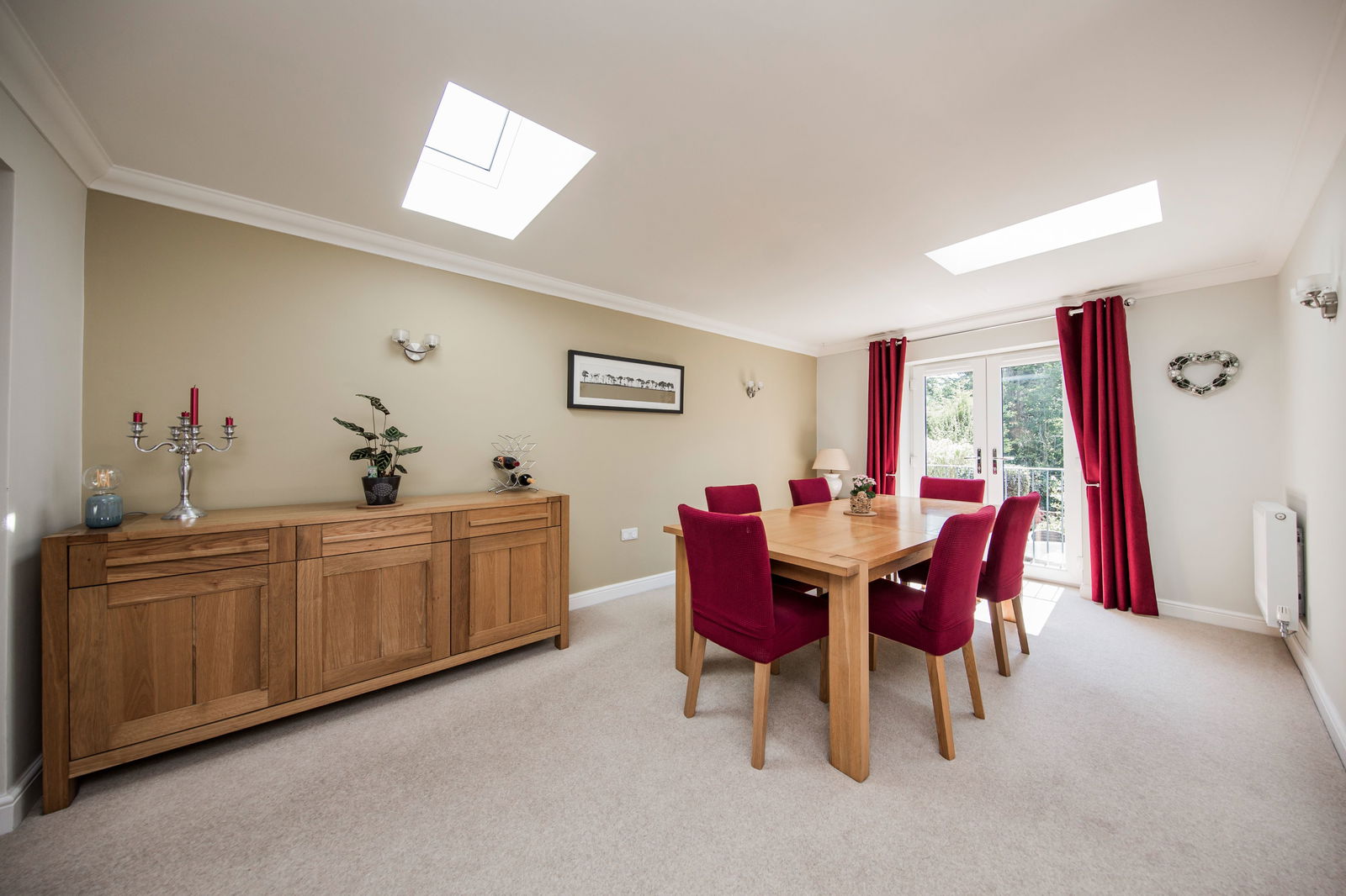 DINING ROOM: Fitted carpet, two radiators, remote control Velux skylight and double doors opening to Juliet style balcony.
