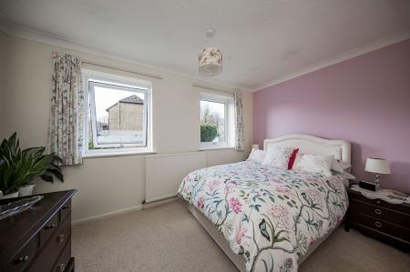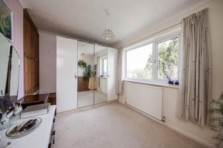 Double fitted wardrobe with glass fronted doors and a further fitted wardrobe cupboard. Fitted carpet, radiator and window overlooking the rear garden with far reaching rooftop views.