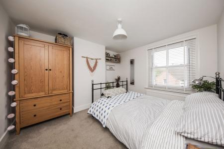 BEDROOM: Radiator, fitted carpet and sash window to front.