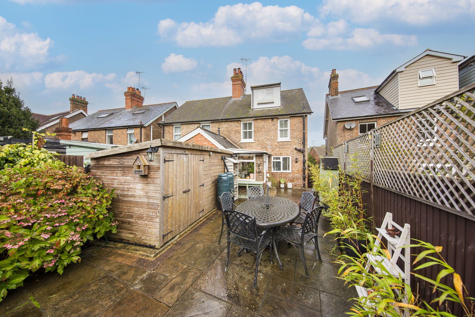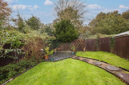 OUTSIDE REAR: Enjoying a southerly aspect the garden features an attractive patio area ideal for outside seating and entertaining, log stores and water butts. The remainder of the garden being principally laid to lawn. To the very rear of the garden is a rear raised seating area to enjoy the evening sun. In addition is a timber garden shed, various shrubs and fence borders to all sides.