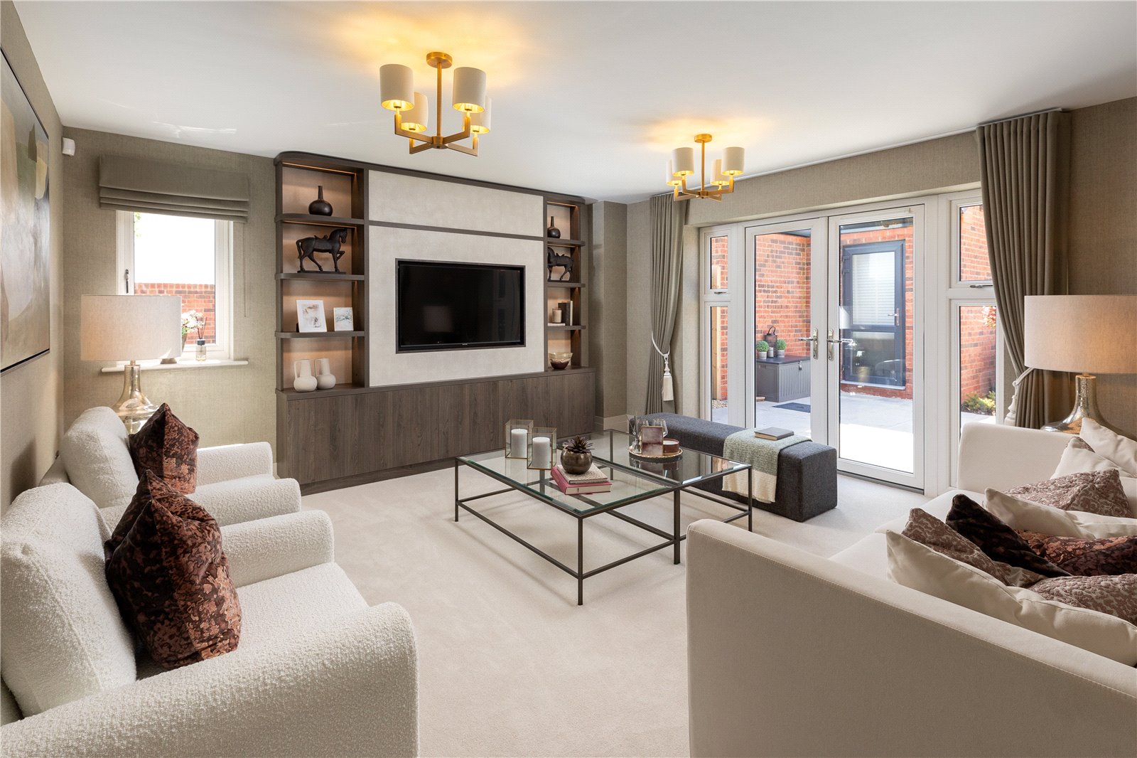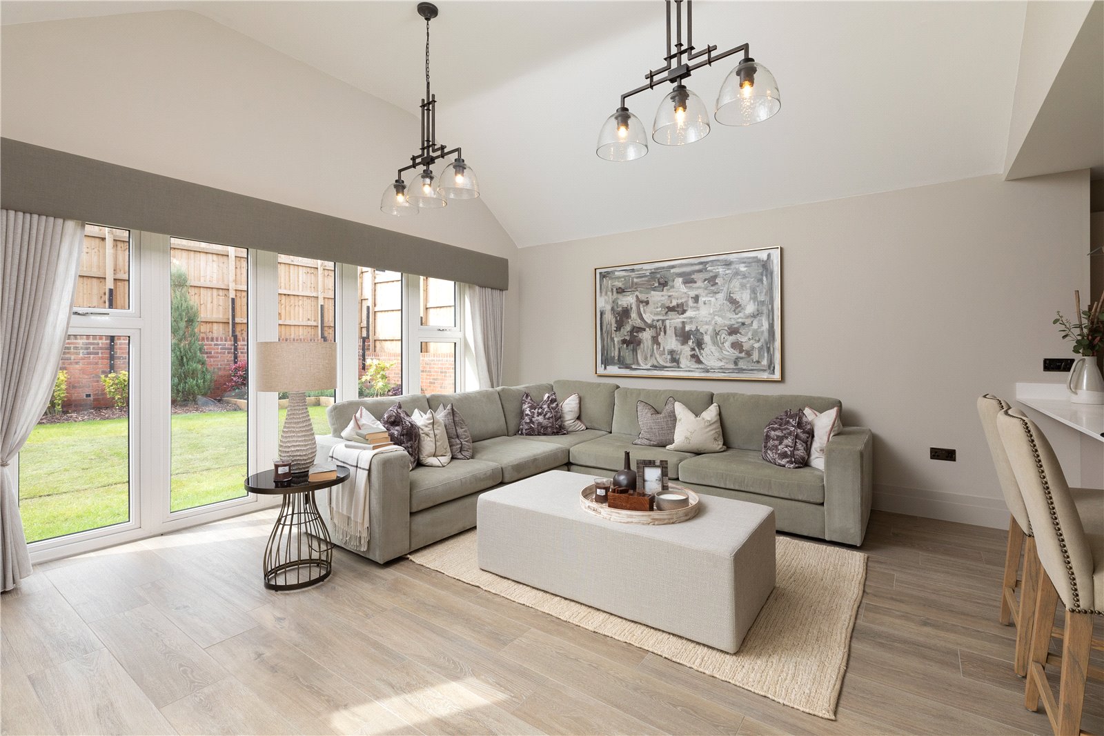Inside, you’ll find a striking open-plan kitchen, dining, and family area - an ideal space for hosting guests. Bi-fold doors open onto the patio and connect to the French doors leading from the separate living room. A designated home office sits at the front of the property.