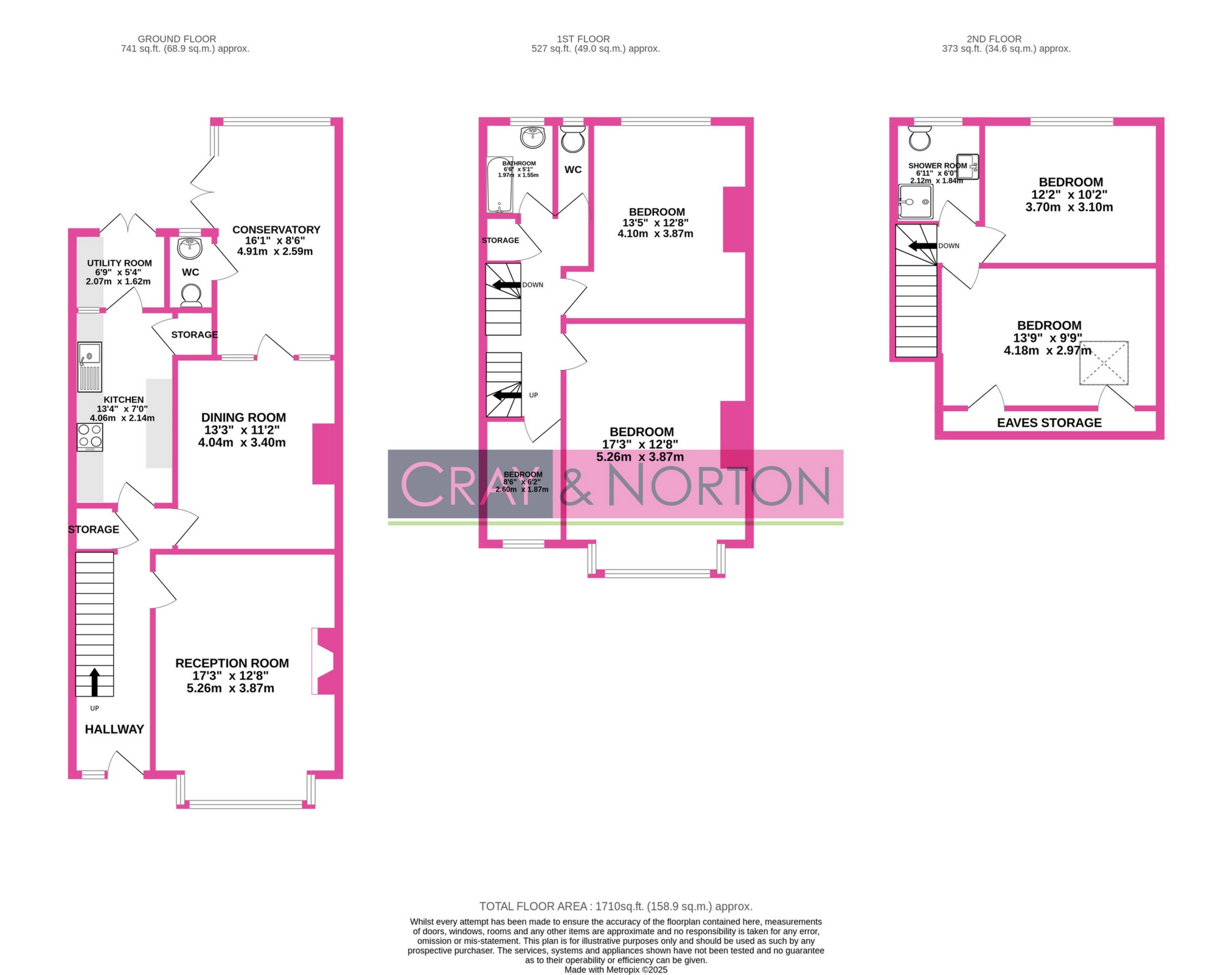 Upon entering, you are greeted with a spacious reception room, a generously sized dining room and a charming conservatory that fills the home with natural light. The ground floor also features a utility room and WC which offers practicality and ease of living. Moving to the first floor, you will find three good-sized bedrooms alongside a family bathroom. The second floor boasts a further two bedrooms as well as a stylish shower room for added convenience.