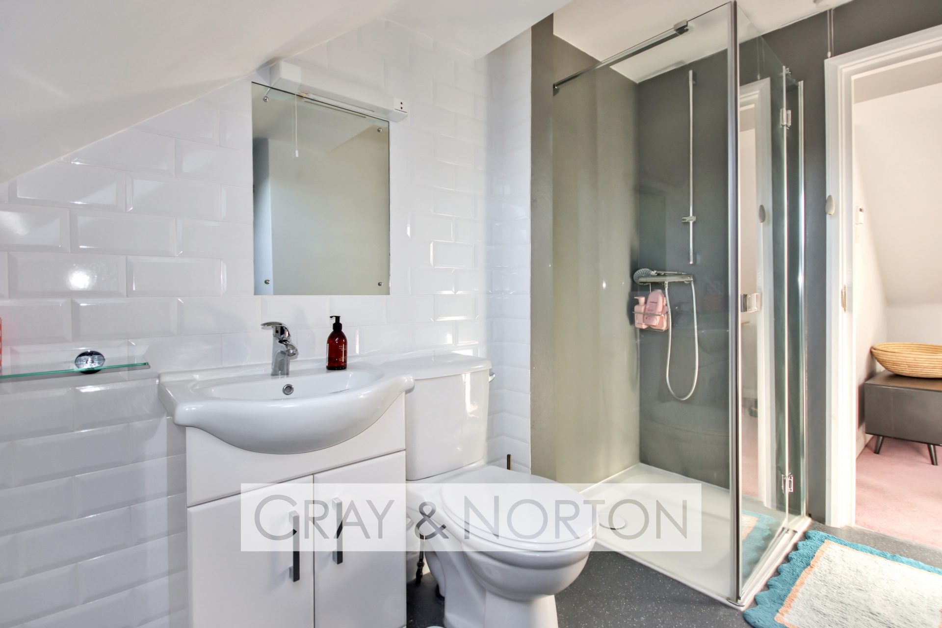 Ascending to the first floor, the home boasts two expansive double bedrooms alongside a versatile smaller double bedroom, all serviced by a tastefully designed family bathroom and a separate WC for convenience. At the top of the house, the second floor reveals an impressive further double bedroom complete with generous eaves storage and a sleek, modern shower room, ensuring plenty of space for everyone in the household.