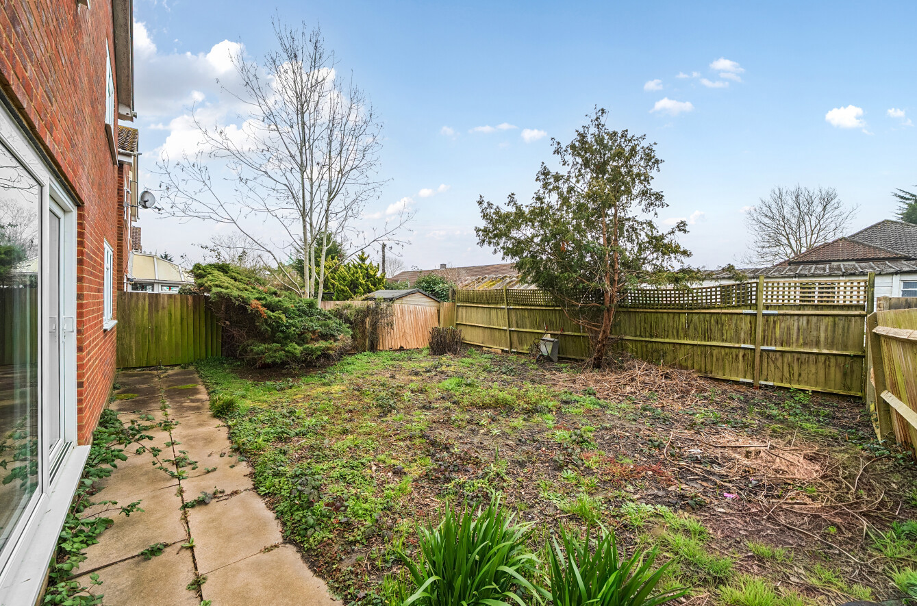 The manageable rear garden has a pleasant southerly aspect with pedestrian access to either side of the property and to the front is off road parking and access to the single garage.