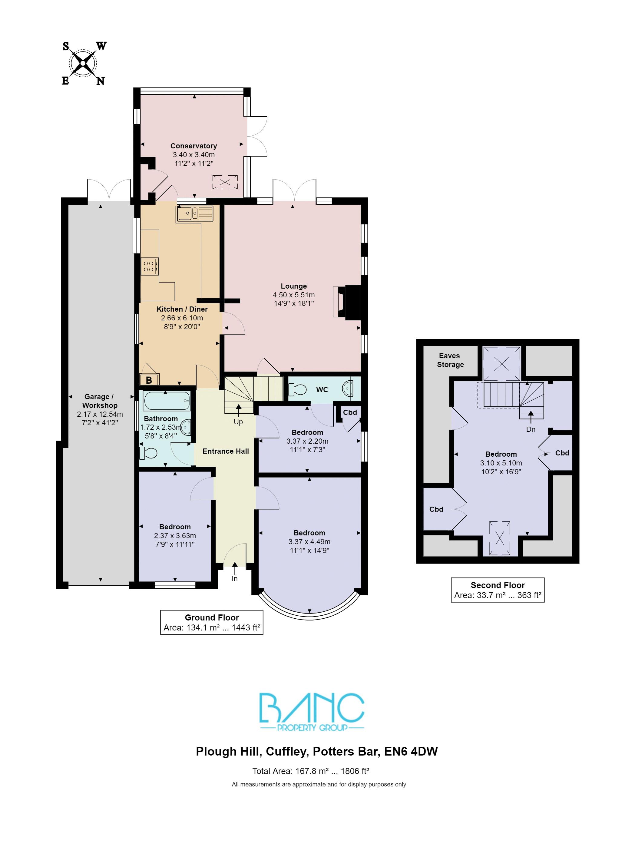 **CHAIN FREE** A detached 3/4 bedroom chalet bungalow set within a short walk to Cuffley Village and station. The property benefits from a large garden and plenty of scope for extension and re development STPP. The accommodation consists of: Entrance hallway, 2 bedrooms, study/bedroom 3 with WC, family bathroom, kitchen breakfast room, living room and conservatory. Upstairs there is another bedroom. Large southwest facing rear garden with patio area, garage, and workshop. Off street parking for several cars. **CHAIN FREE**