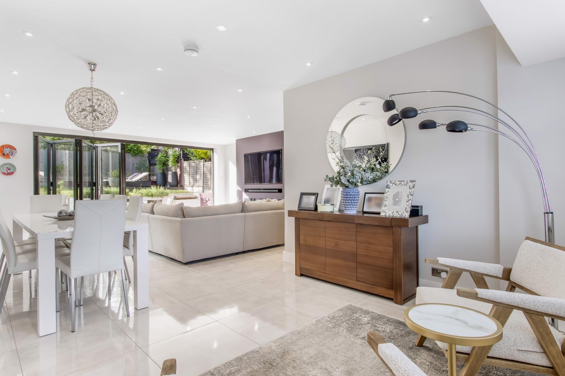 This stunning three-bedroom detached family home has been fully refurbished to an exceptional standard, offering contemporary style, practicality, and effortless charm. With nearly 1,700 square feet of well-designed space, it caters perfectly to families seeking a short walk to local schools or professionals looking for a convenient London commute, with the station just moments away. Step inside to a welcoming entrance hallway, leading to an expansive Super Room—a beautifully integrated kitchen, living, and dining space, framed by sleek bi-folding doors that open onto the garden, creating a seamless indoor-outdoor flow. Additional features include a utility room and a stylish downstairs cloakroom, adding convenience to everyday living. Upstairs, the home offers three well-proportioned bedrooms, one currently used as a dressing room, alongside an elegant luxury bathroom, designed for relaxation. The exterior boasts a secluded rear garden, ideal for privacy and tranquillity, as well as side access and ample off-street parking, ensuring both practicality and convenience. A perfect blend of sophisticated design and everyday comfort, this home is a true standout.